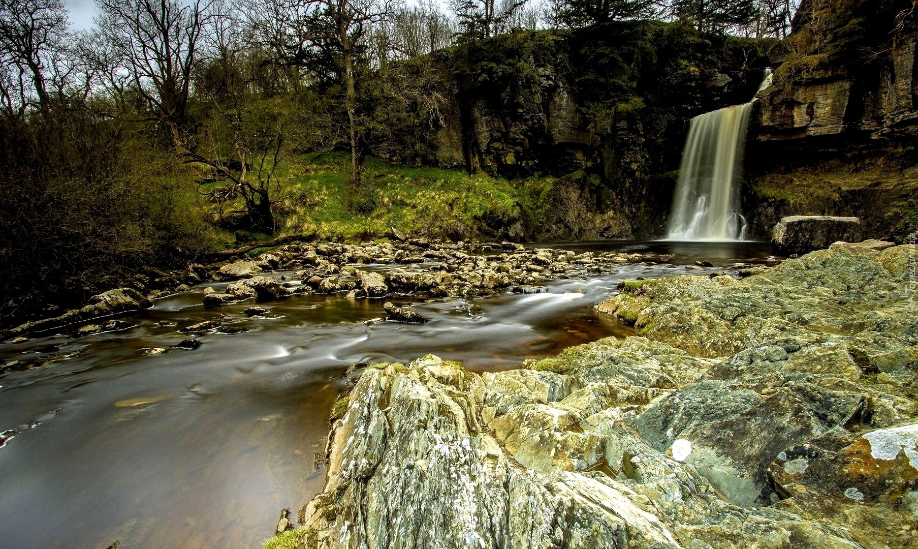Edytor tapety: Wodospad, Skały, Drzewa