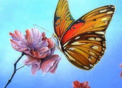 Edytor tapety: Malarstwo, Obraz, Motyl, Motylek, Kwiat