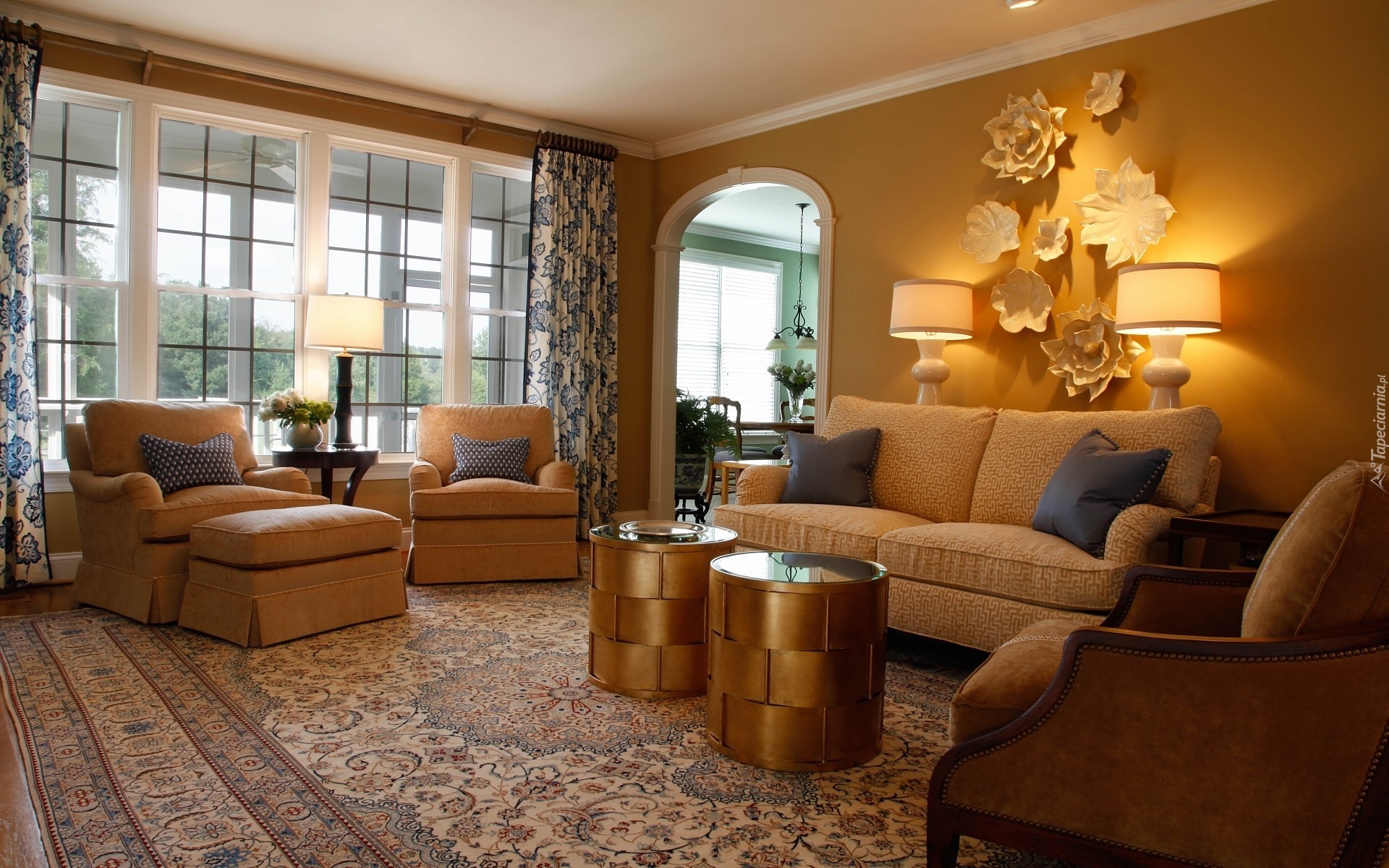 Edytor tapety: Pokój, Lampy, Oświetlone, Ozdoby,Fotele, Kanapa