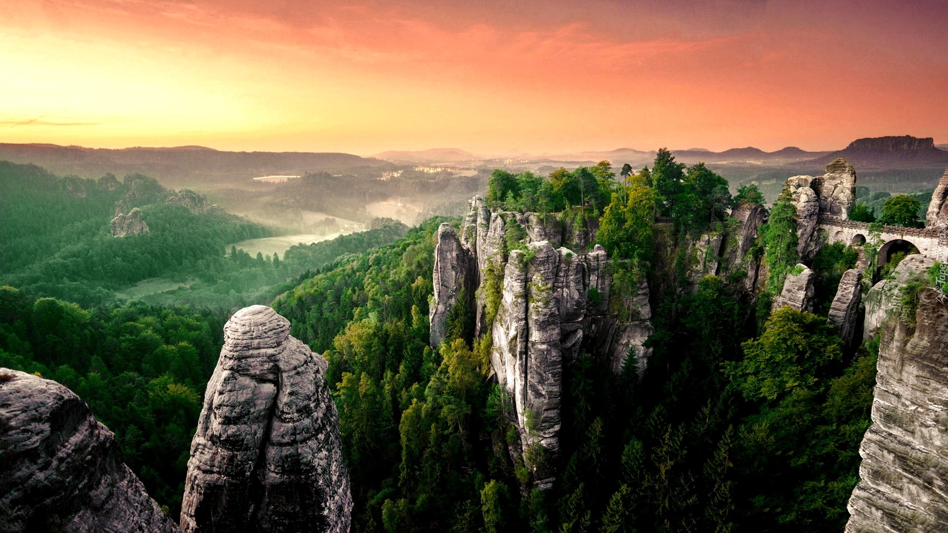 Edytor tapety: Zachód, Słońca, Skały, Drzewa