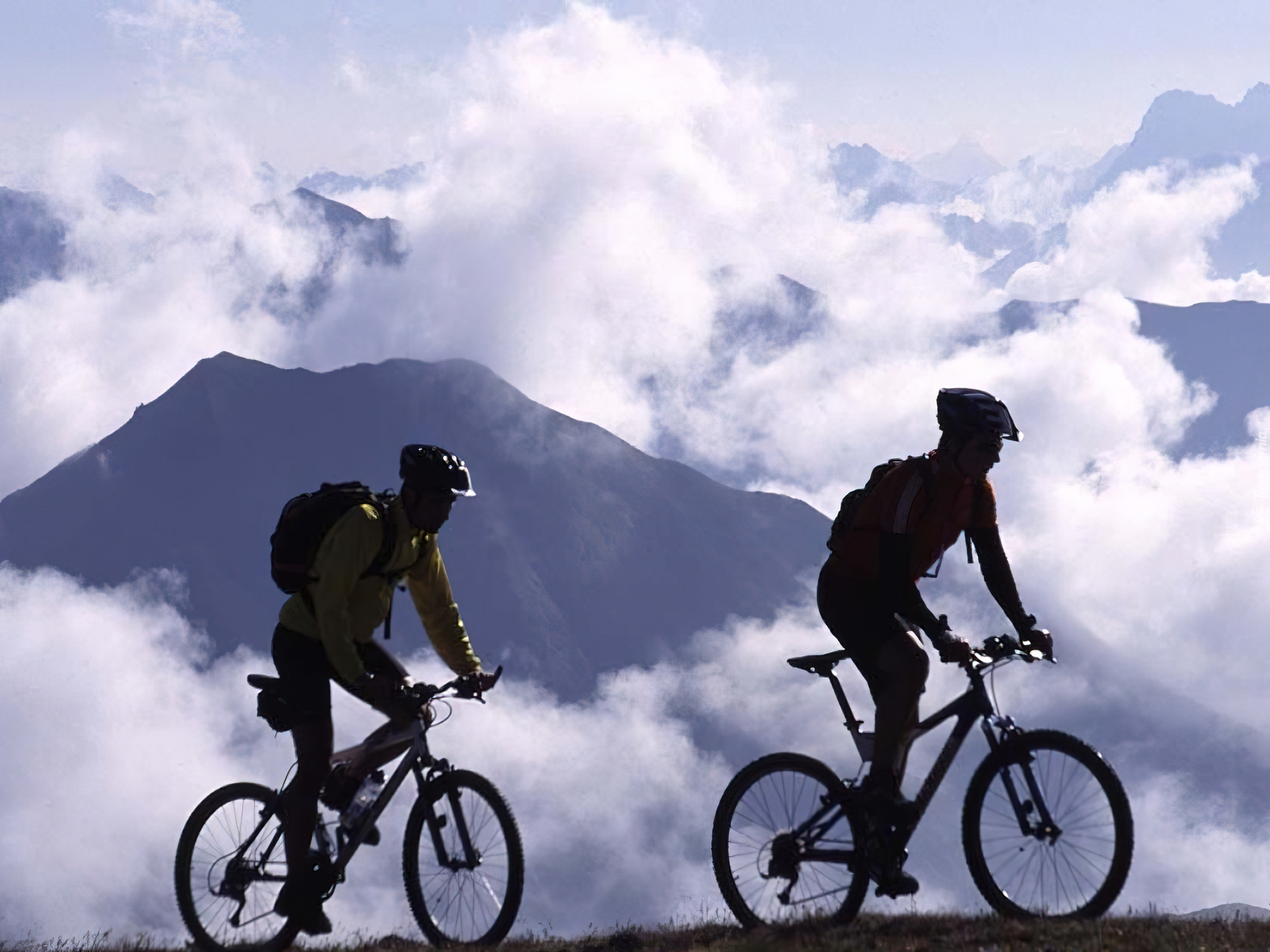 Edytor tapety: Rower,koło , kierownica, kask ,chmury