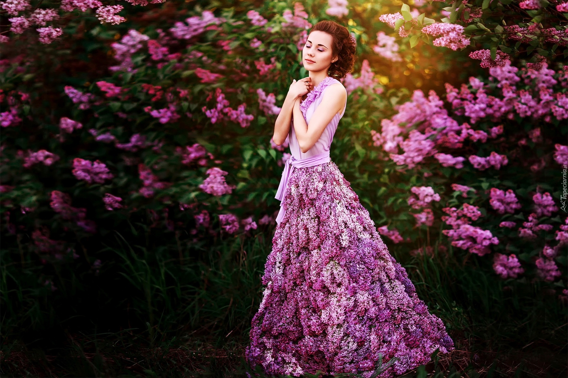 Edytor tapety: Kobieta, Makijaż, Kwiaty, Bzu