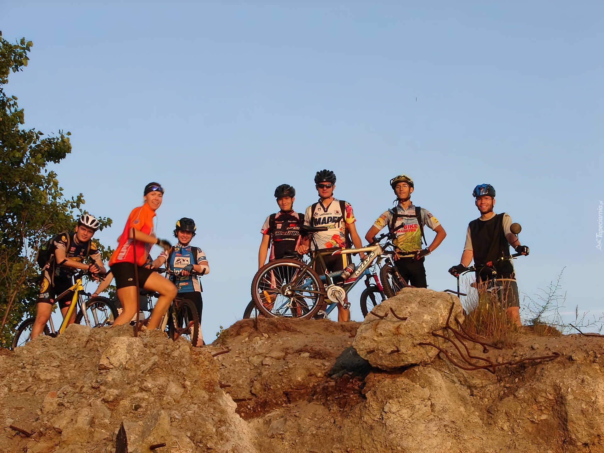 Edytor tapety: Rower,koło , kierownica, kask ,rowerzyści