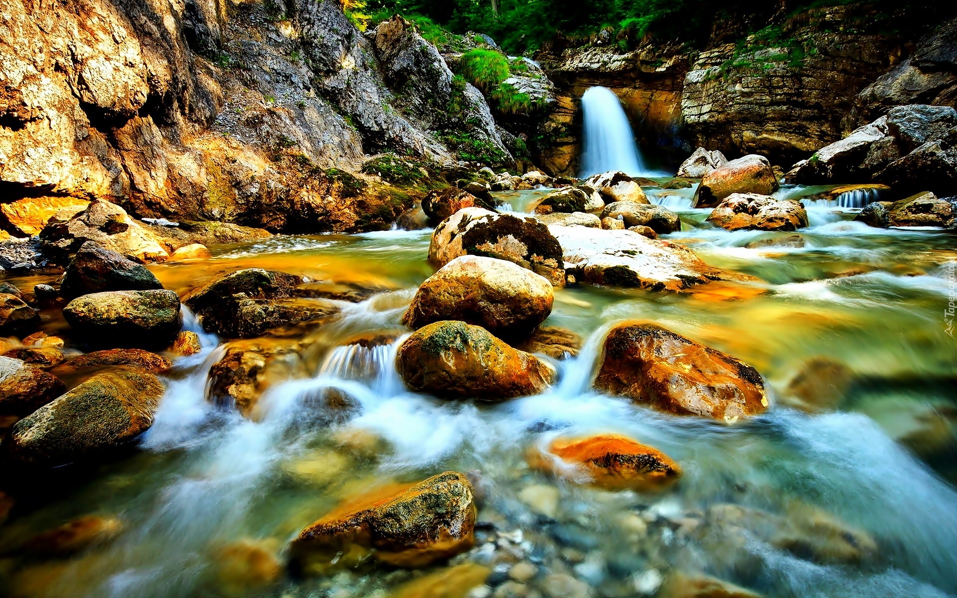 Edytor tapety: Skały, Rzeka, Głazy, Wodospad