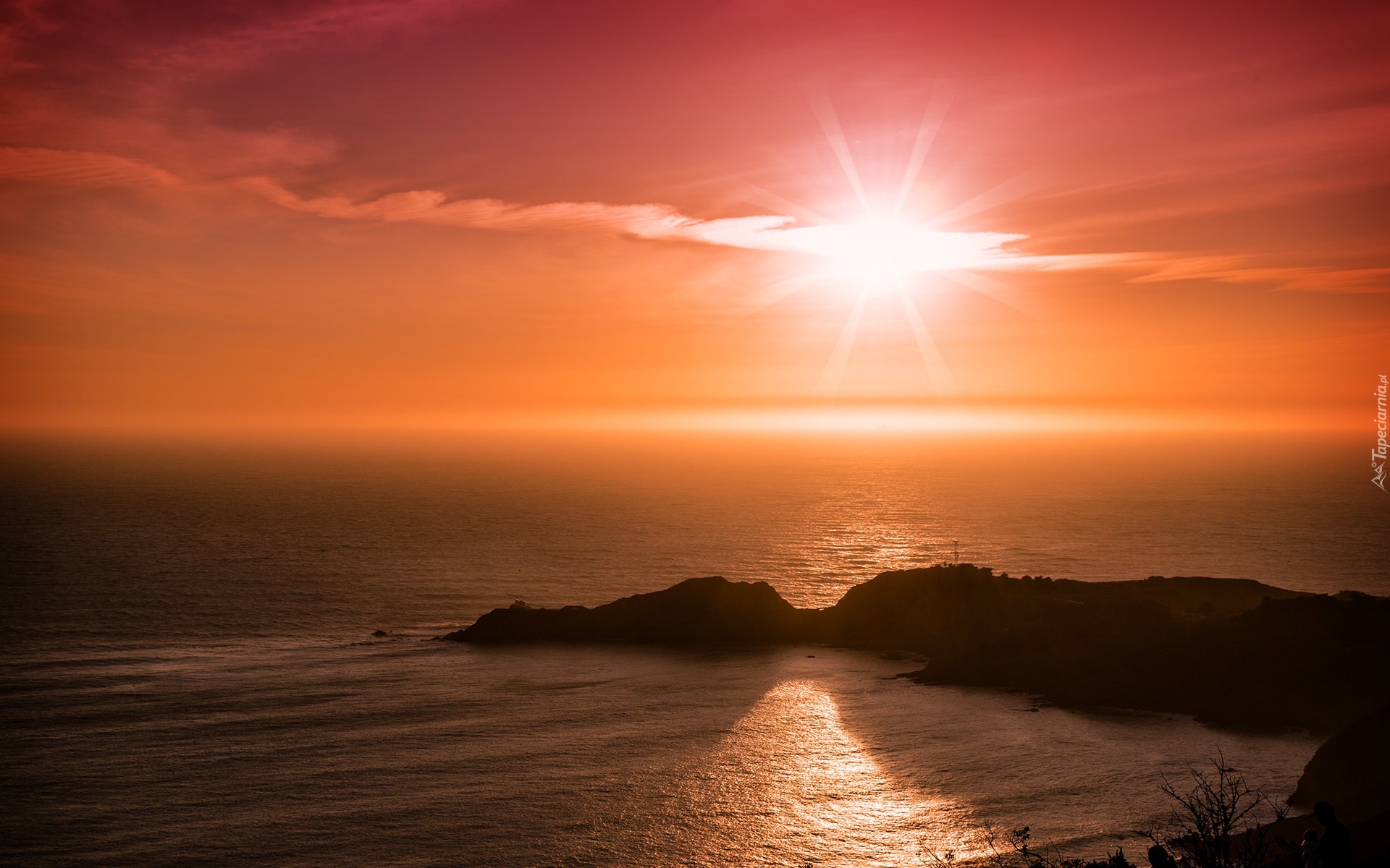 Edytor tapety: Niebo, Morze, Zachod, Slonca, Skaly