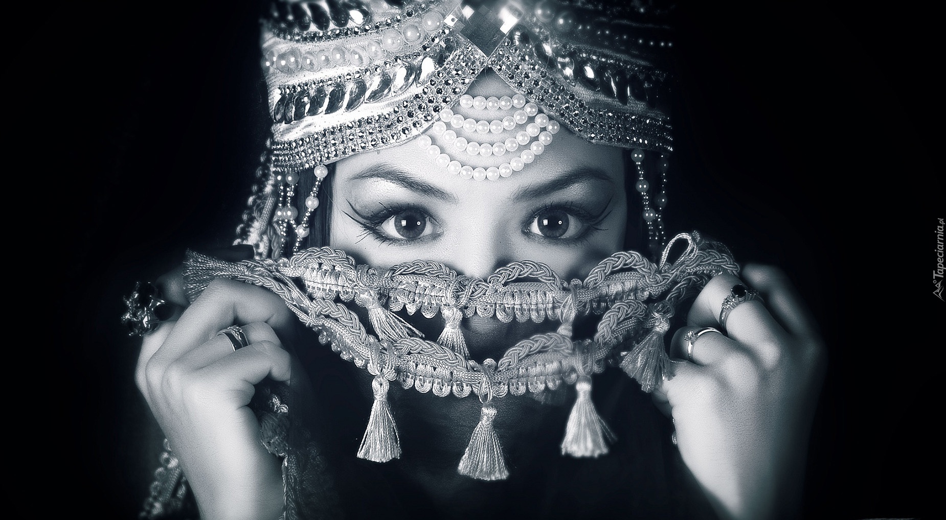 Edytor tapety: Kobieta, Twarz, Orientalnie, Makijaż, Biżuteria, Nakrycie, Głowy