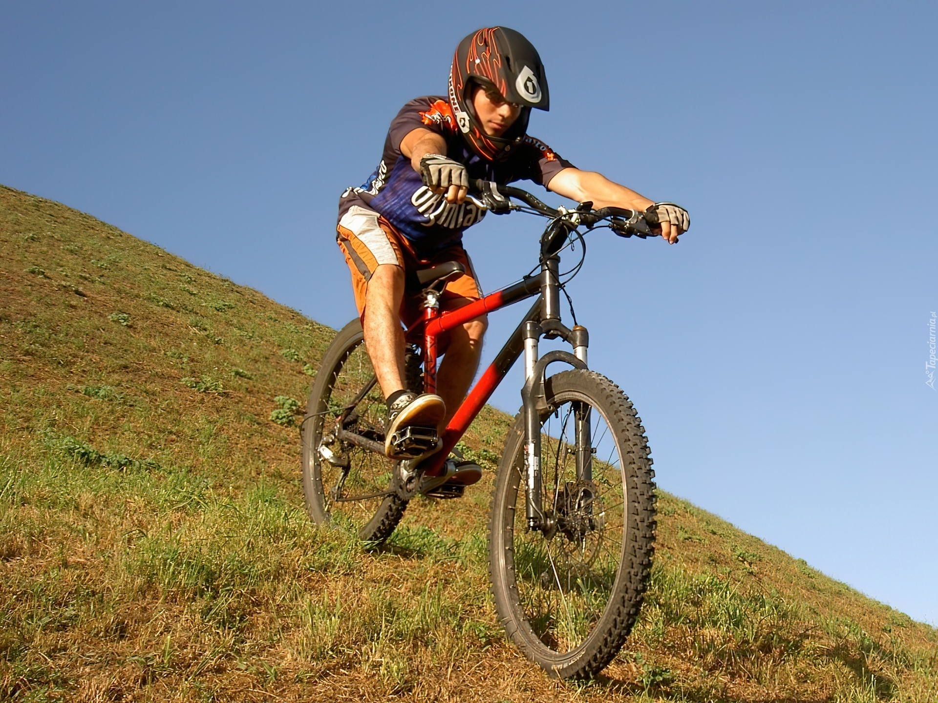 Edytor tapety: Rower,koło , kierownica, kask ,rowerzysta