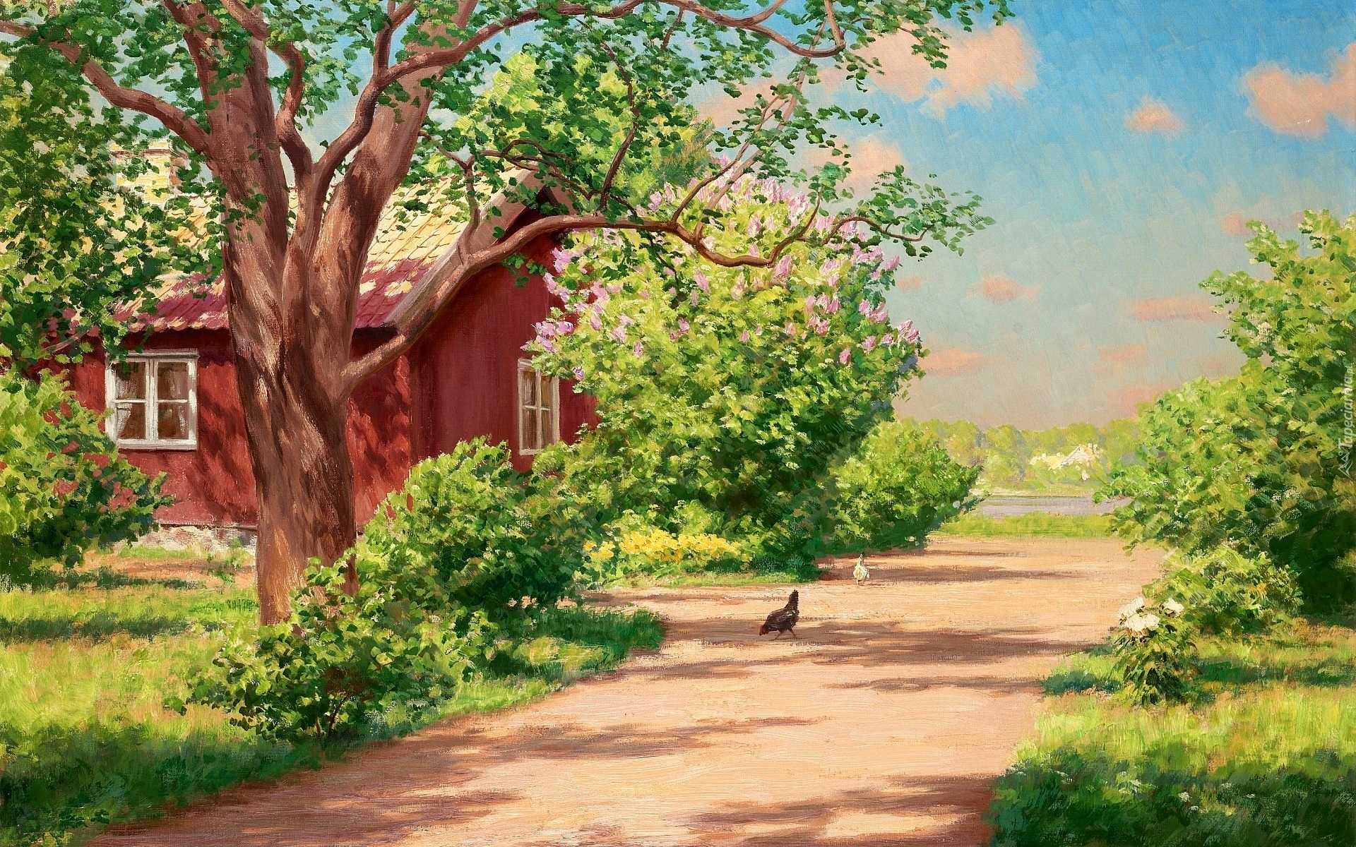 Edytor tapety: Wiejski, Domek, Droga, Obraz, Olej, Johan Krouthen