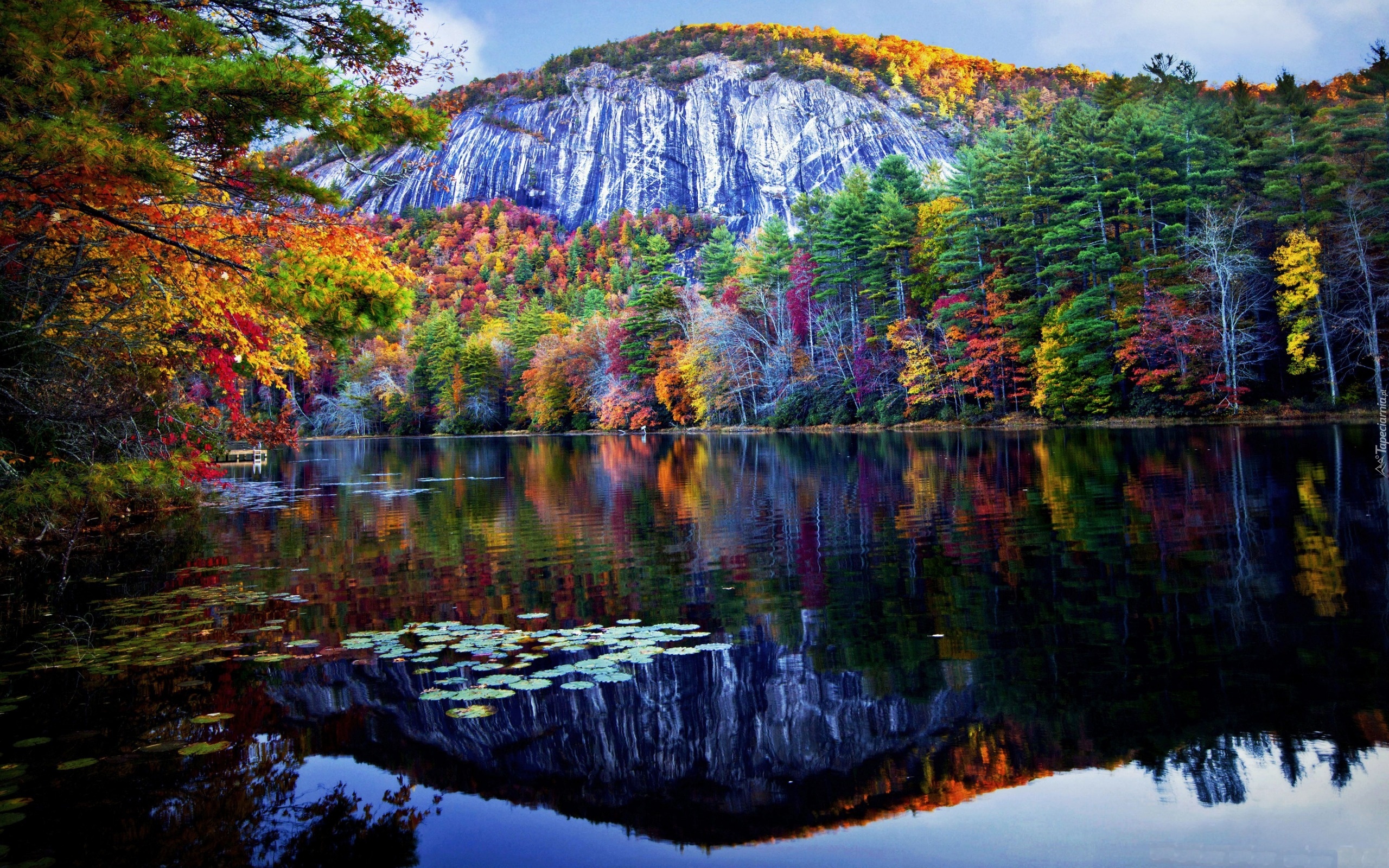 Edytor tapety: Góry, Drzewa, Jezioro, Jesień
