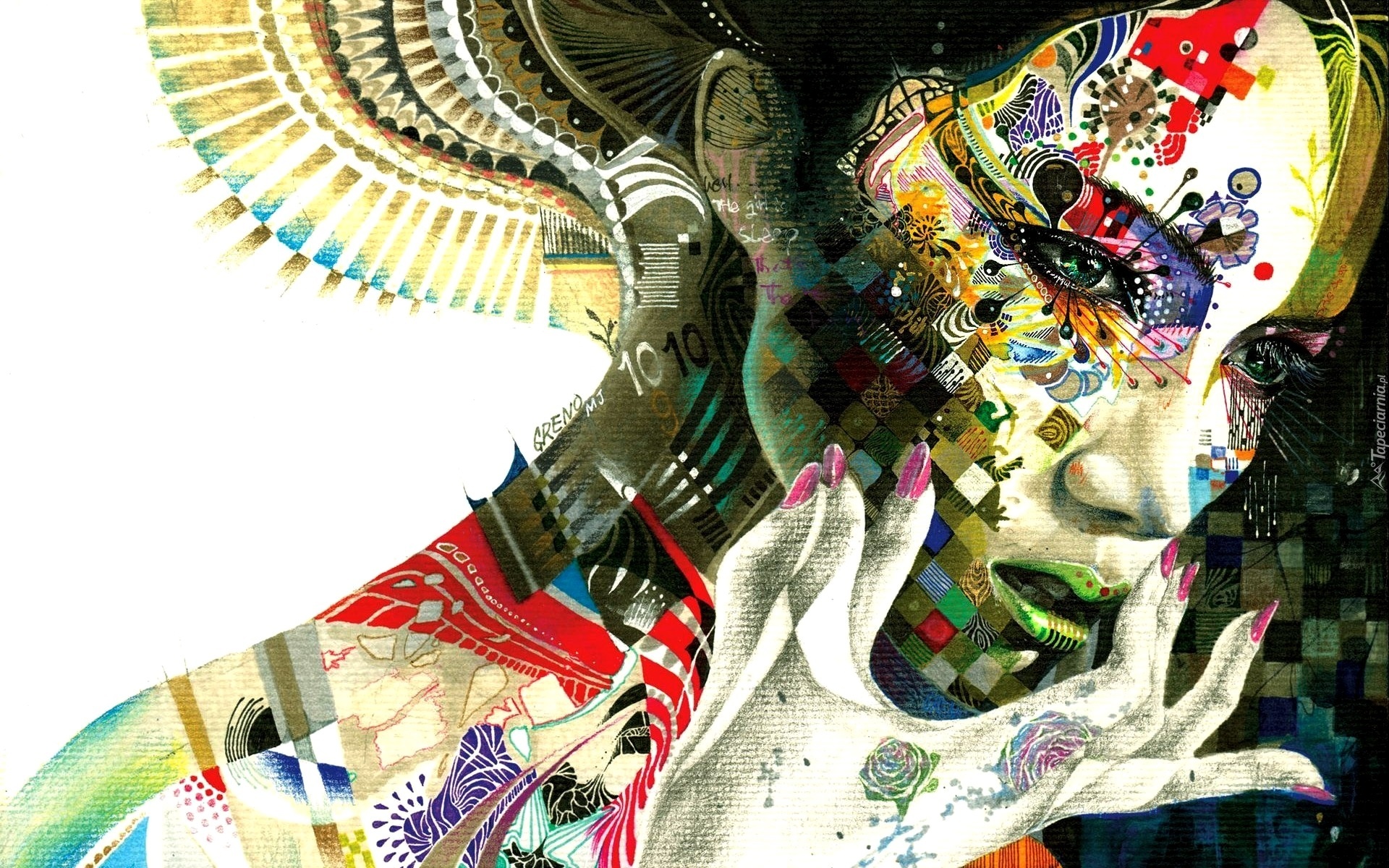 Edytor tapety: Rysunek, Kobieta, Kolorowe Tatuaże