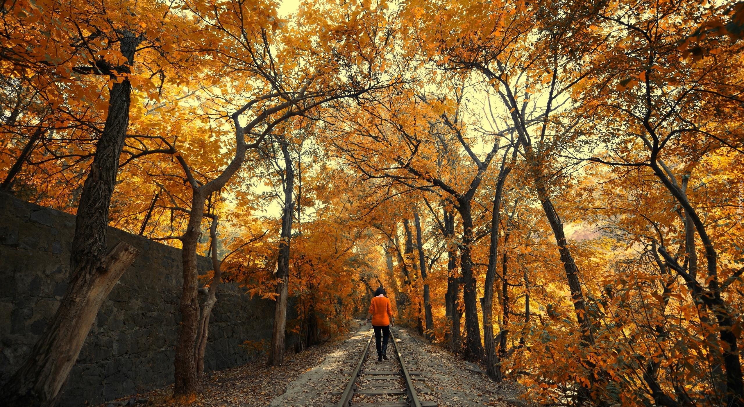 Edytor tapety: Jesień, Drzewa, Tory, Kobieta, Park