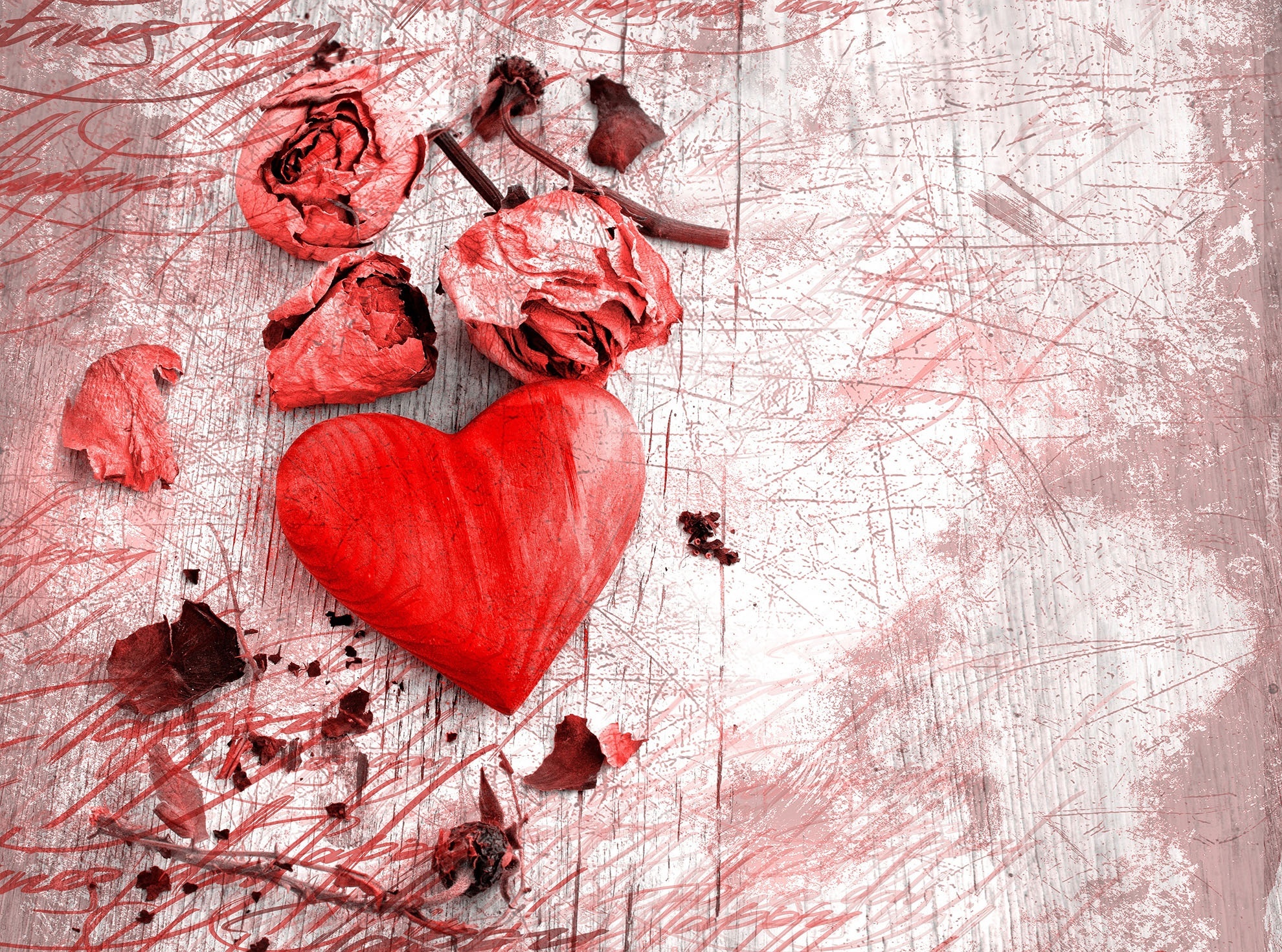 Edytor tapety: Serce, Serduszko, Walentynki, Suche, Kwiaty, Róża