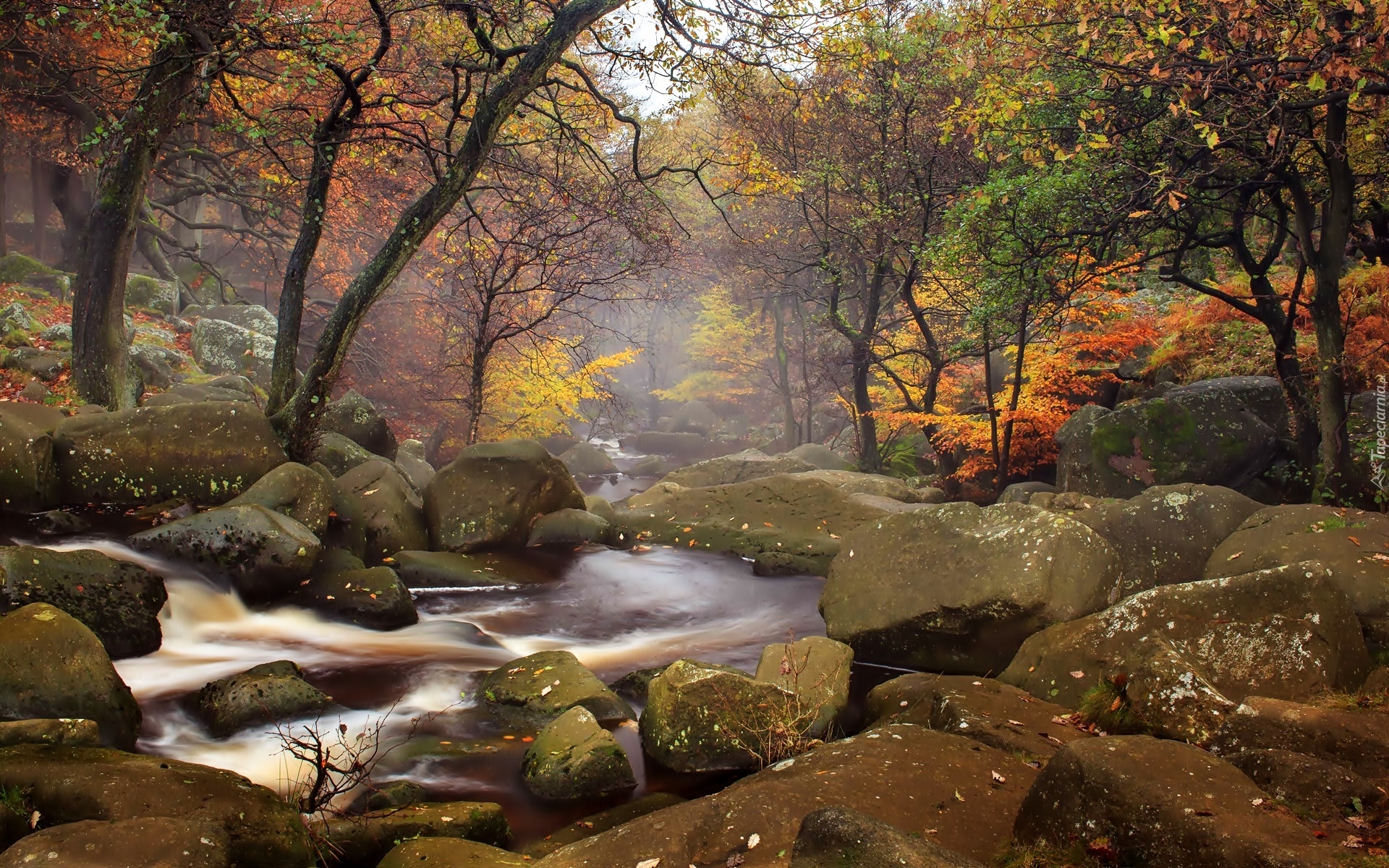 Edytor tapety: Jesień, Las, Strumyk, Kamienie