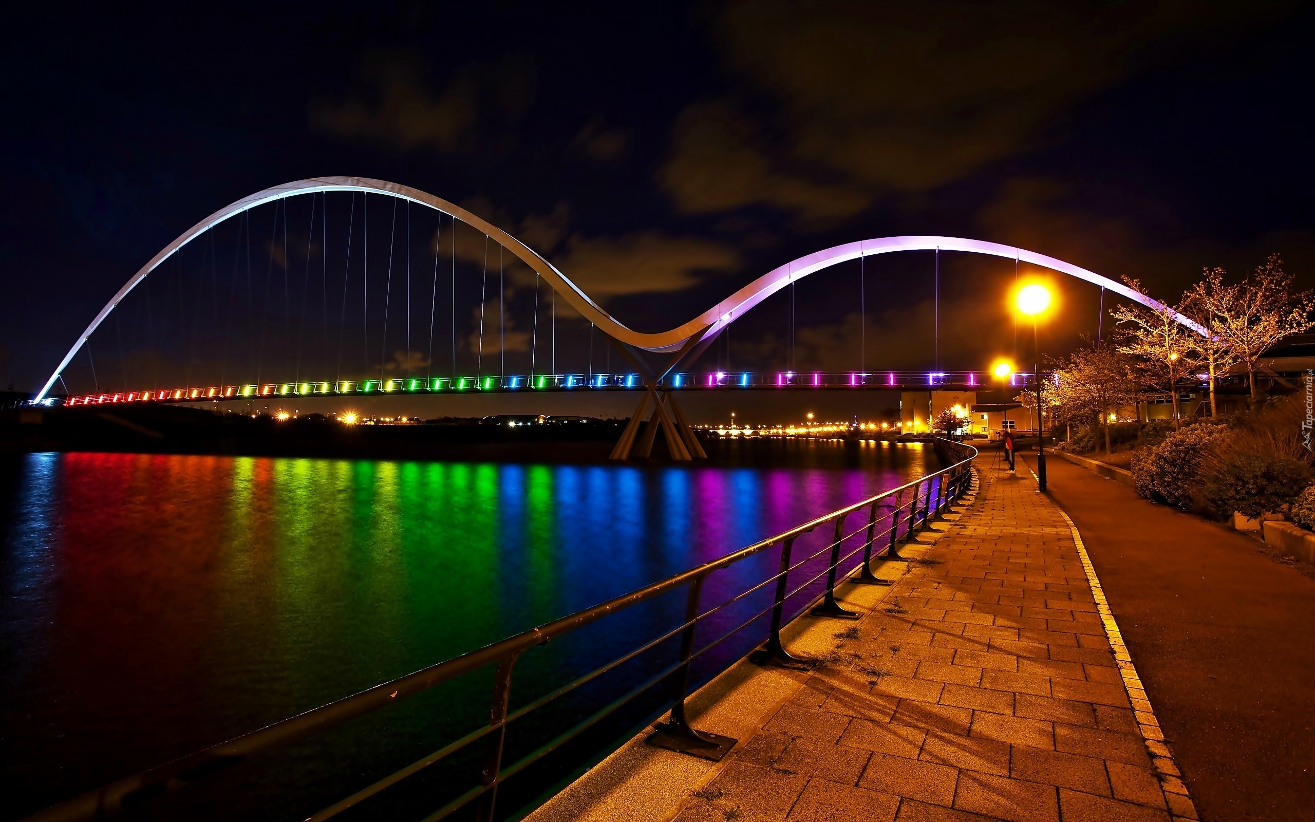 Edytor tapety: Rzeka, Oświetlony, Most, Bulwar