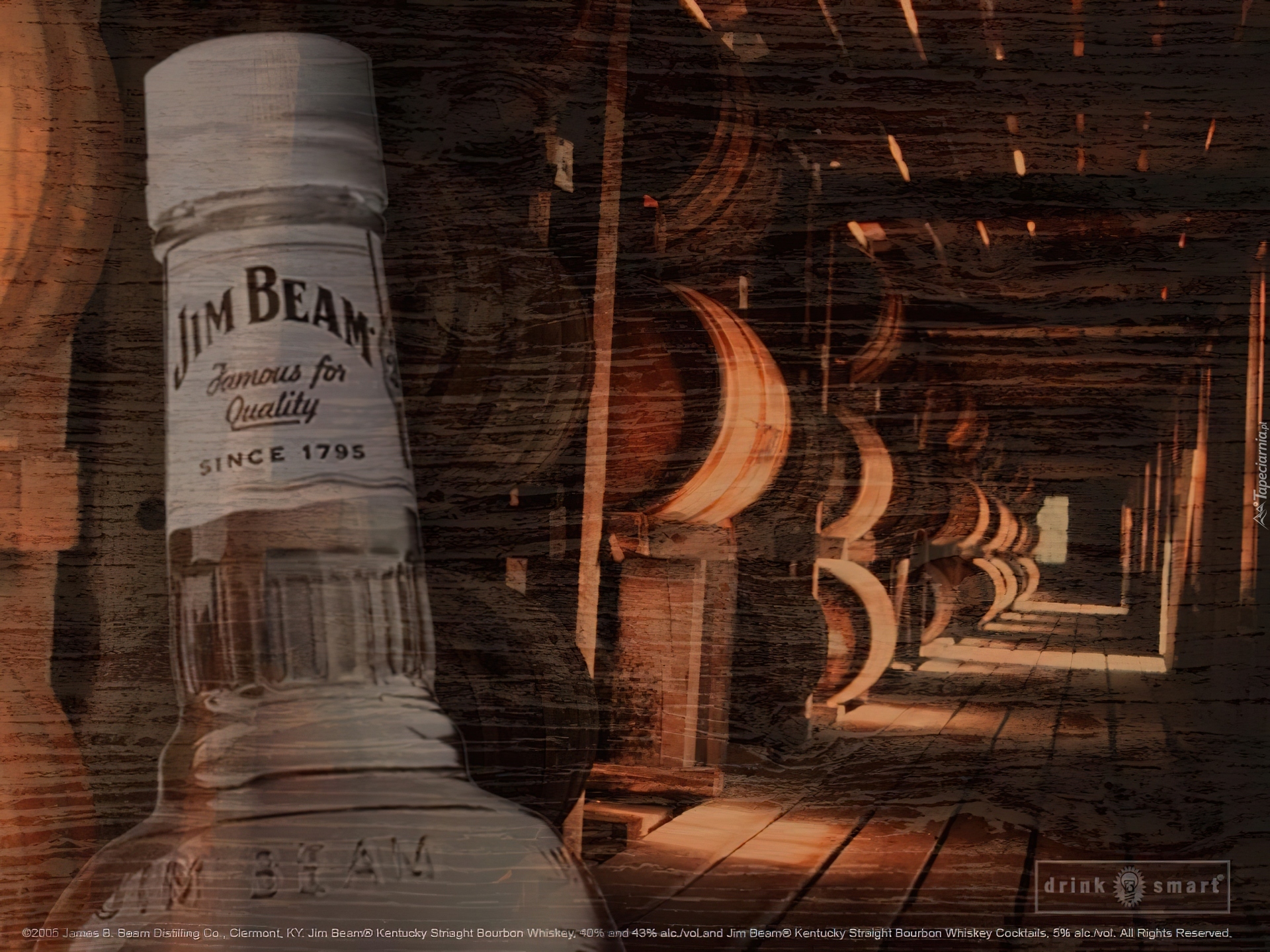Edytor tapety: Burbon, butelka, beczki