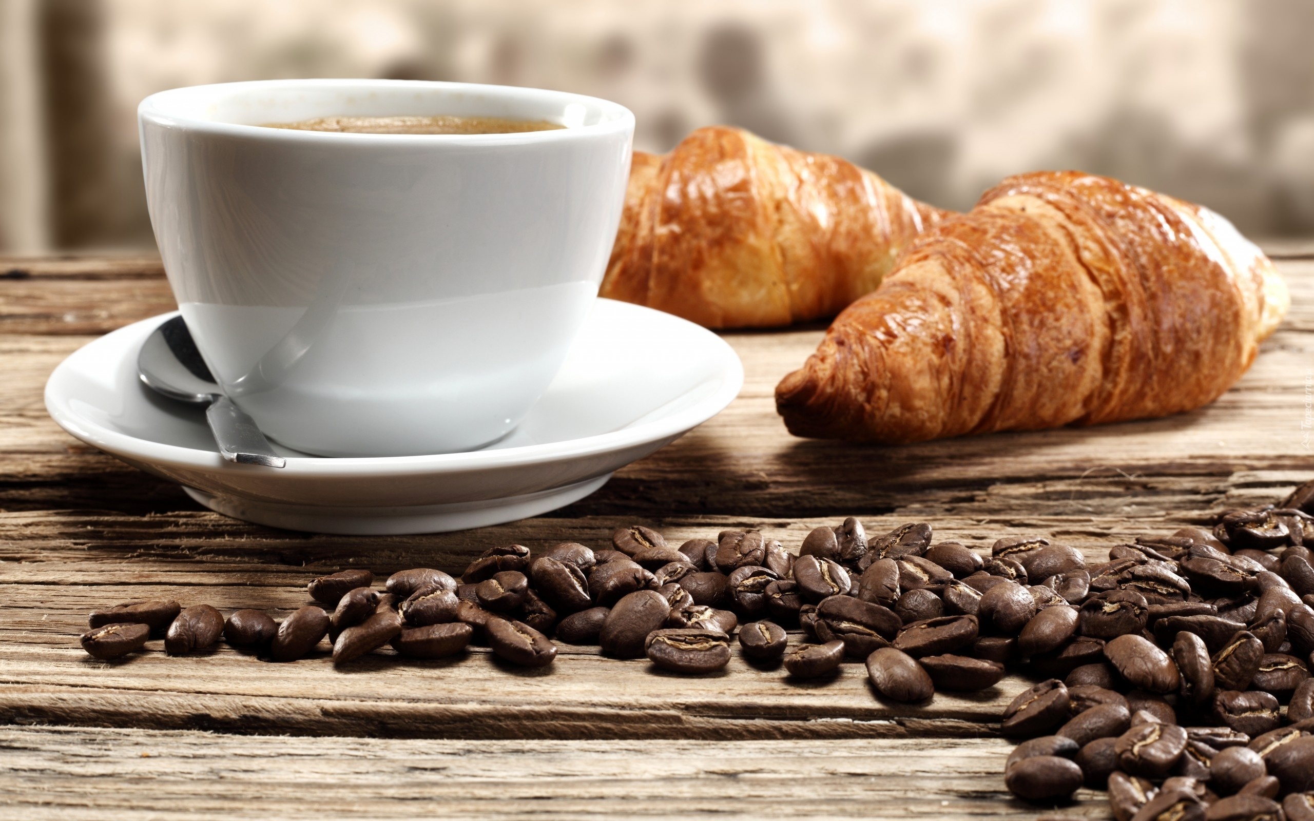 Edytor tapety: Kawa, Ziarna, Rogaliki, Filizanka