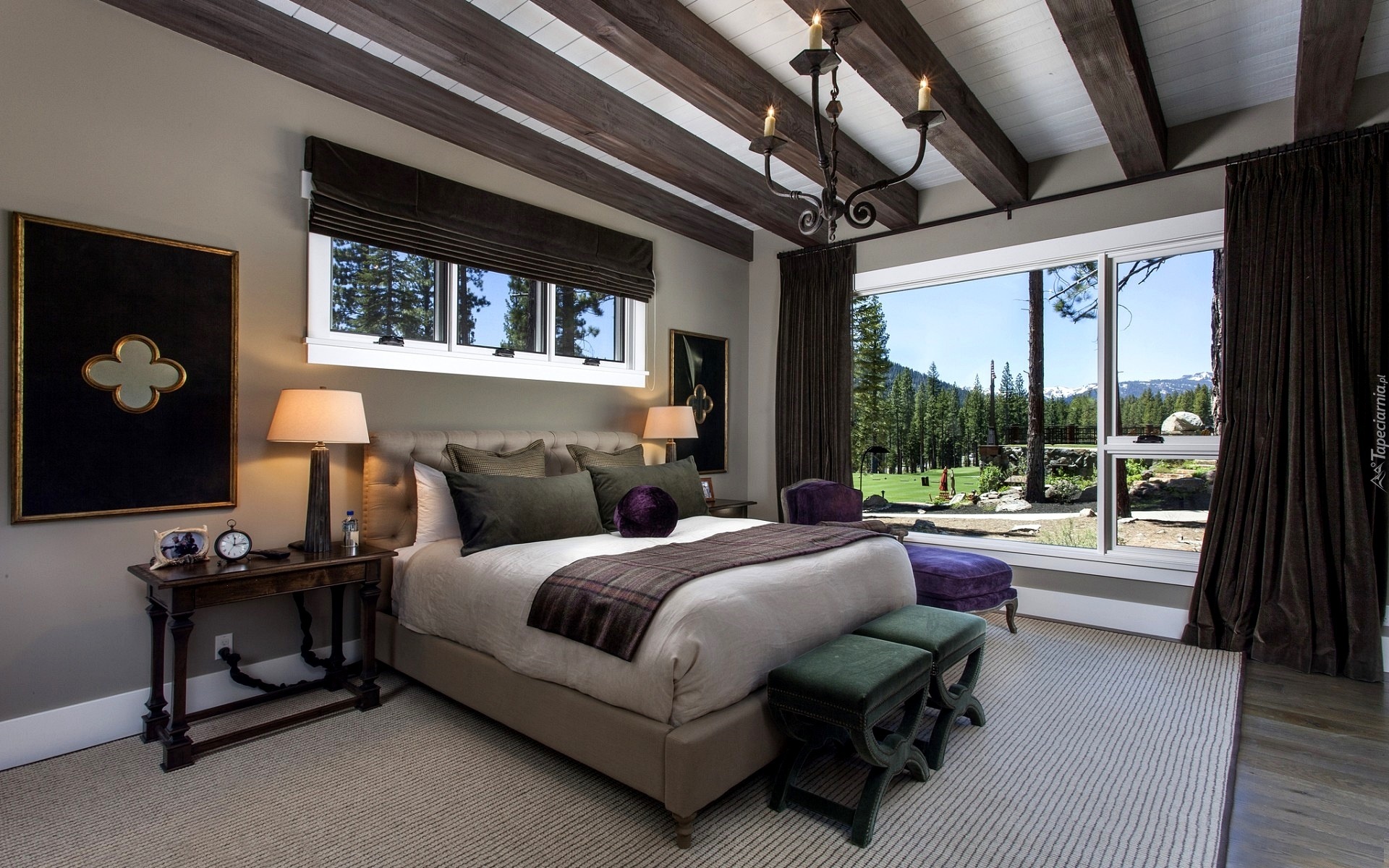 Edytor tapety: Wnętrze, Sypialnia, Okno, Ogród