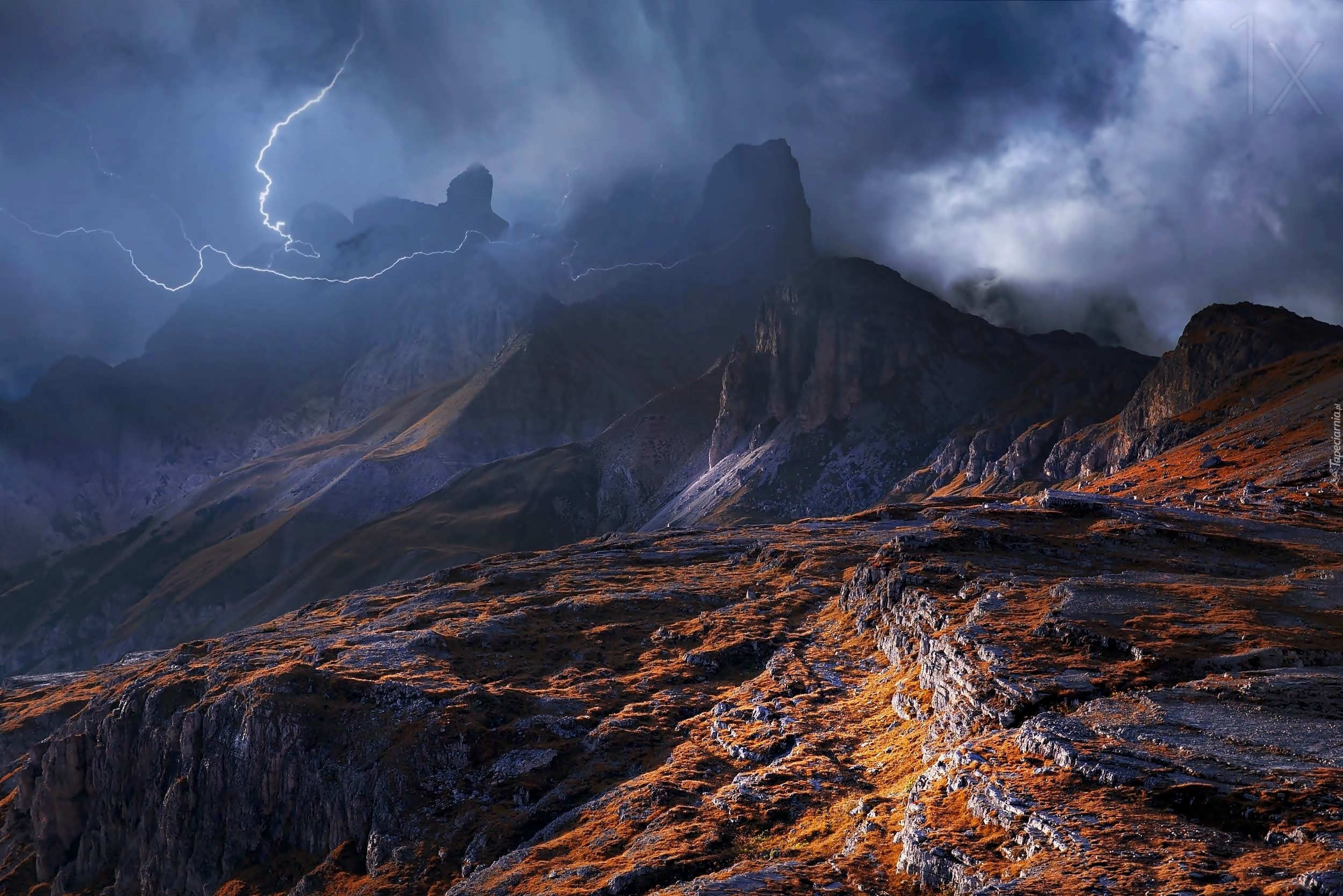 Edytor tapety: Góry, Dolomity, Burza, Chmury