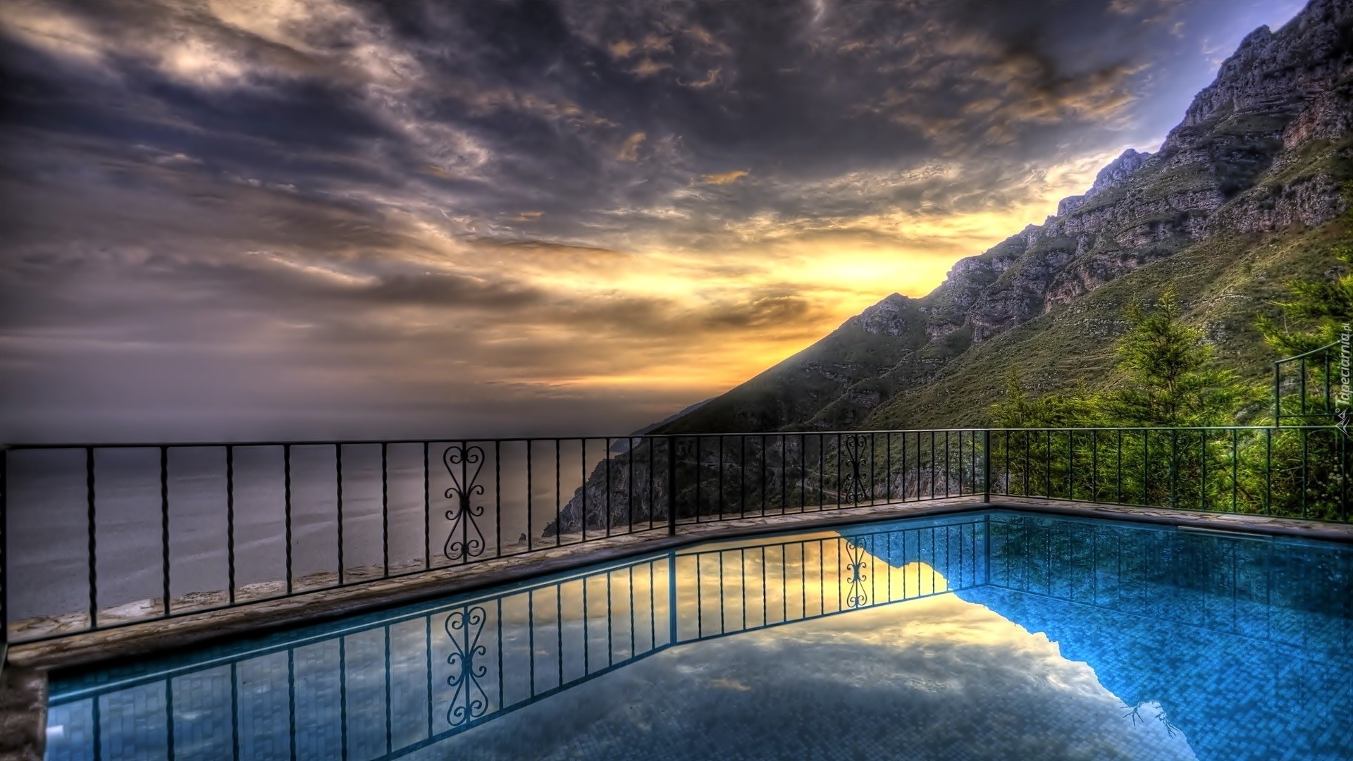 Edytor tapety: Chmury, Morze, Góry, Basen