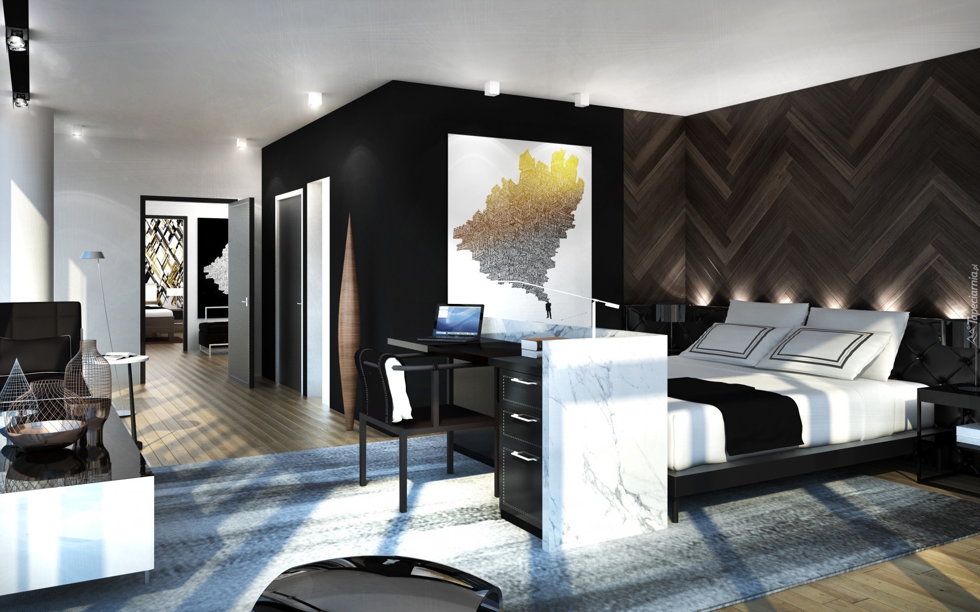 Edytor tapety: Wnętrze, Sypialnia, Czarny, Wystrój