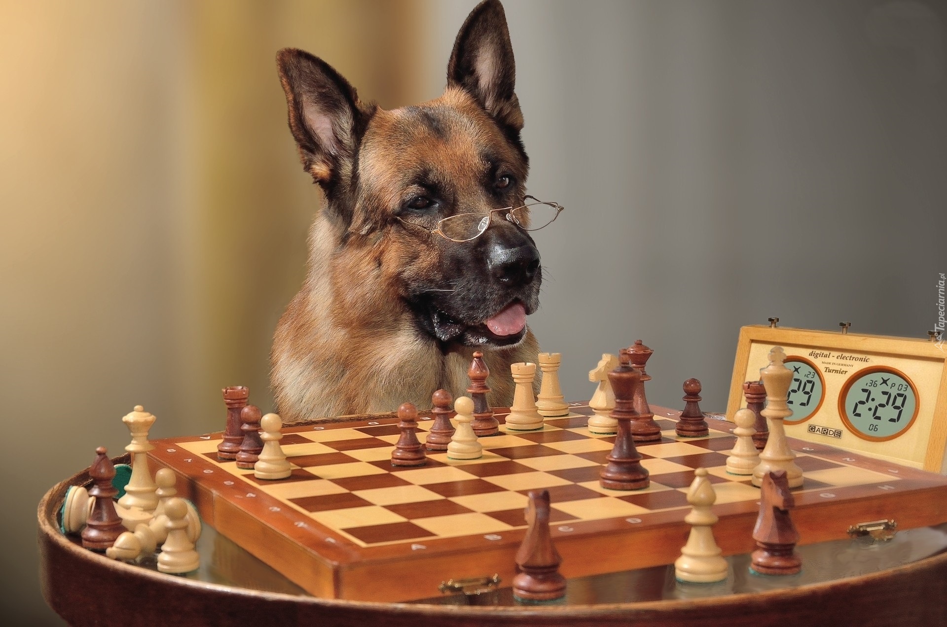 Edytor tapety: Owczarek niemiecki, Szachy, Śmieszne