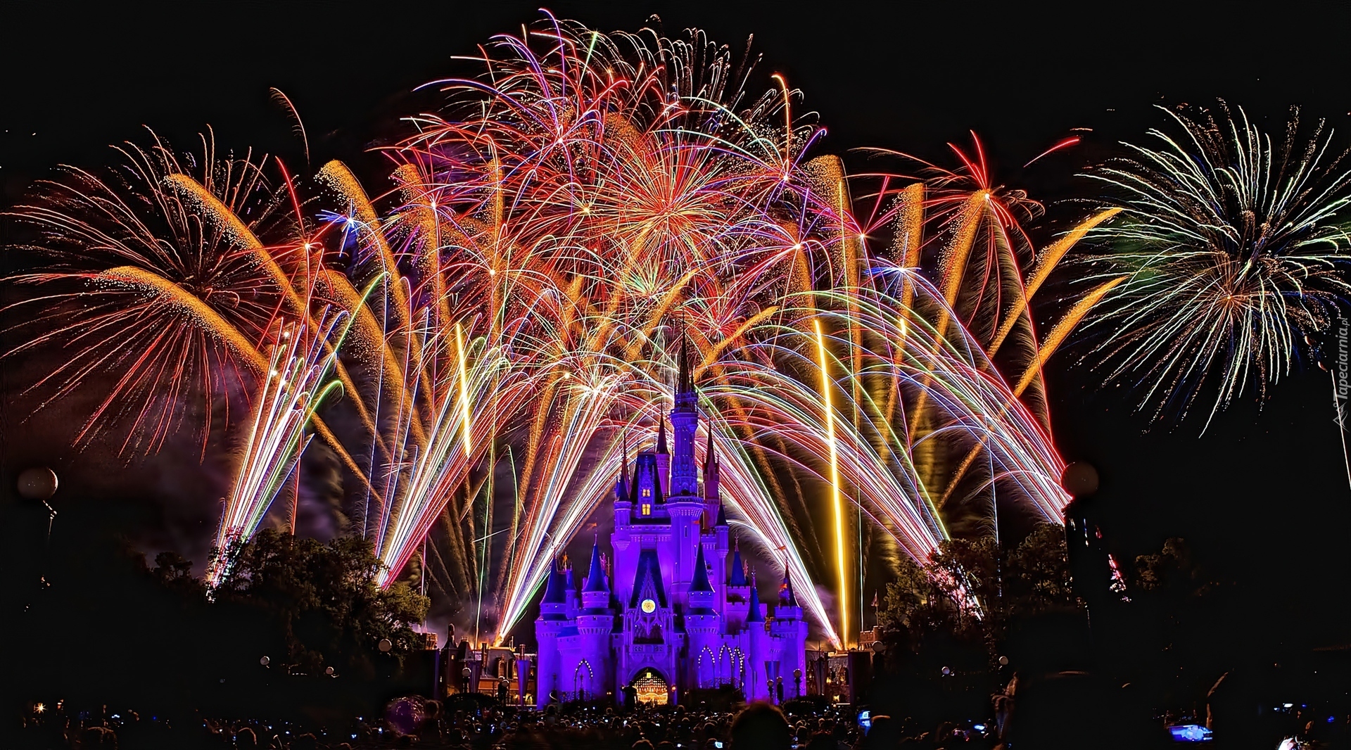 Edytor tapety: Disneyland, Fajerwerki, Paryż, Nocą
