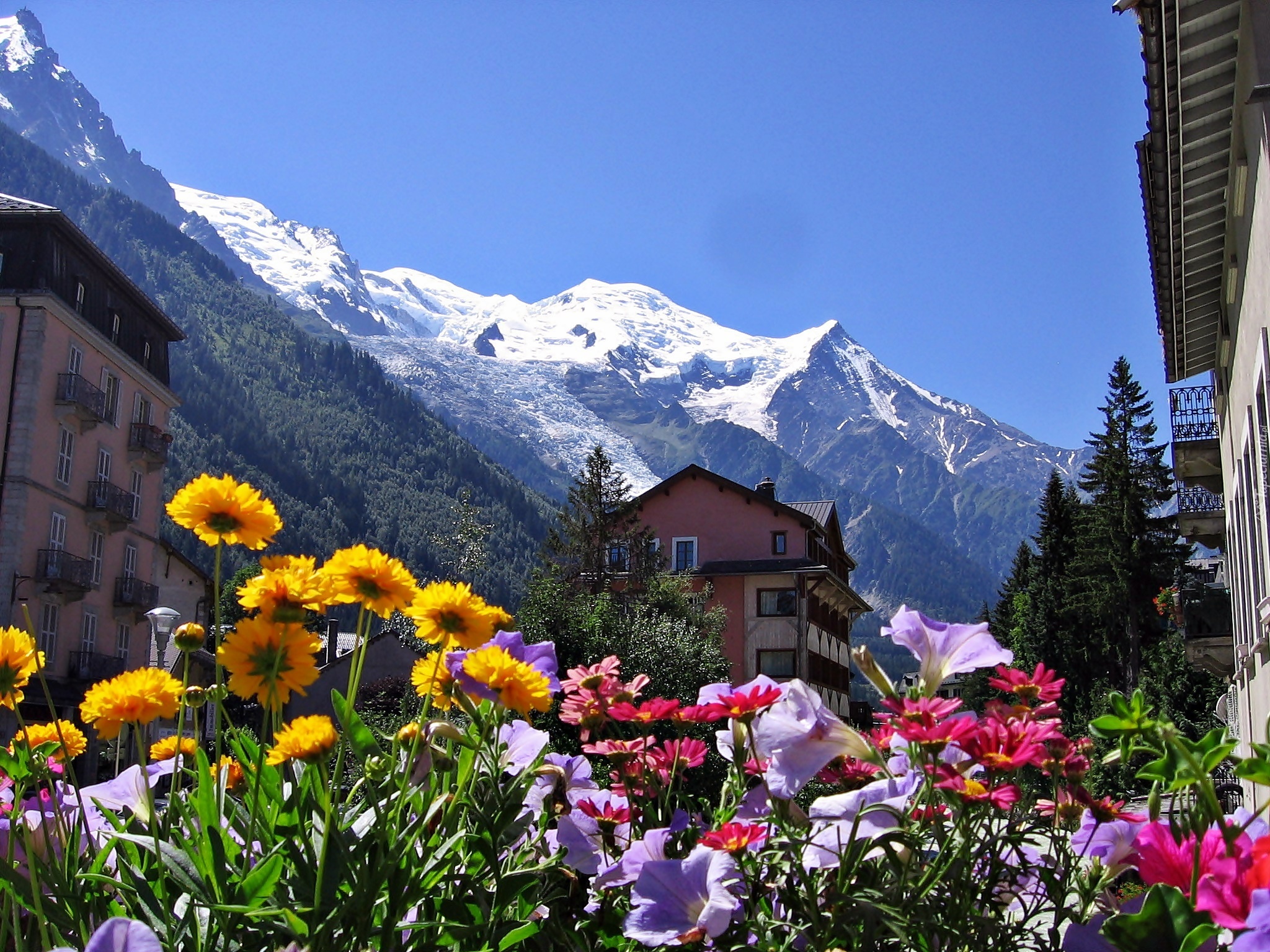 Edytor tapety: Góry, Domy, Kwiaty, Chamonix