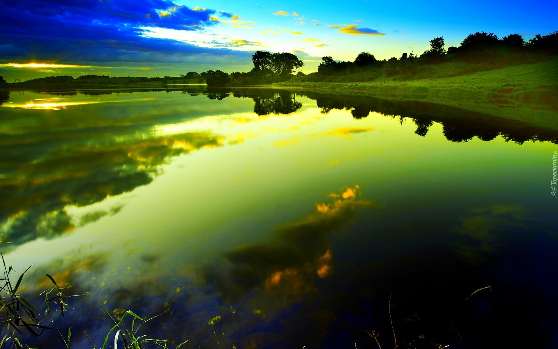 Edytor tapety: Jezioro, Calm, Drzewa, Chmury, Odbicie, Ontario