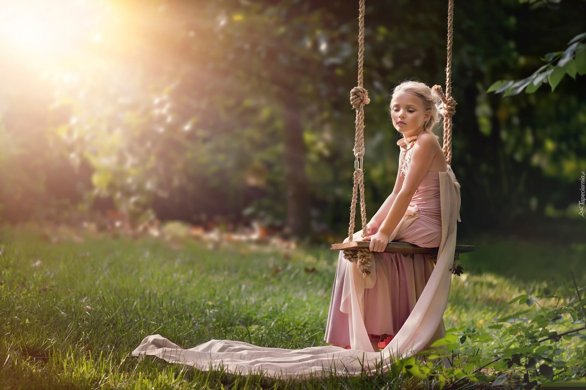 Edytor tapety: Dziewczynka, Huśtawka, Trawa