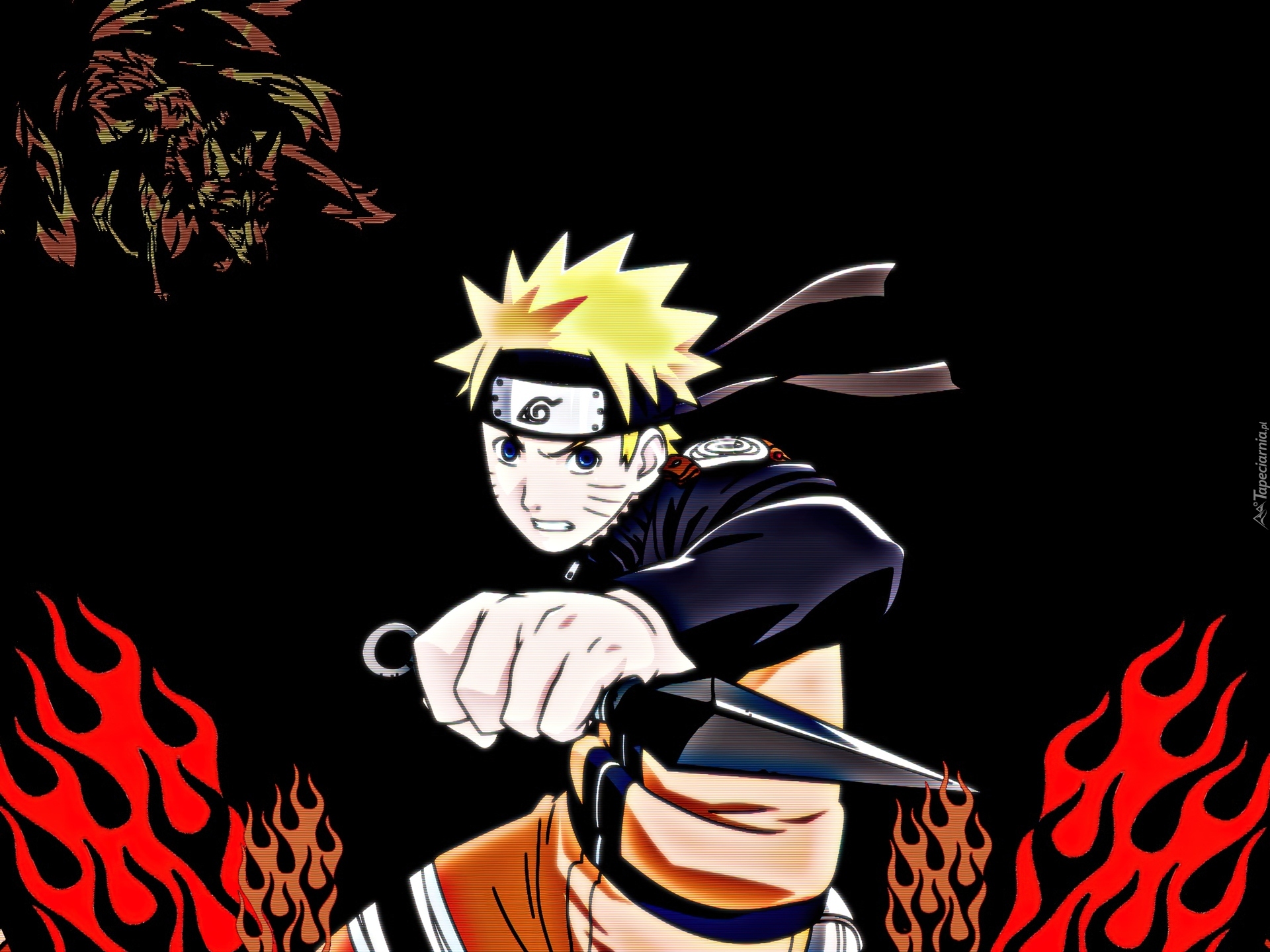 Edytor tapety: Naruto, Lis, Płomienie, Sztylet, Chakra