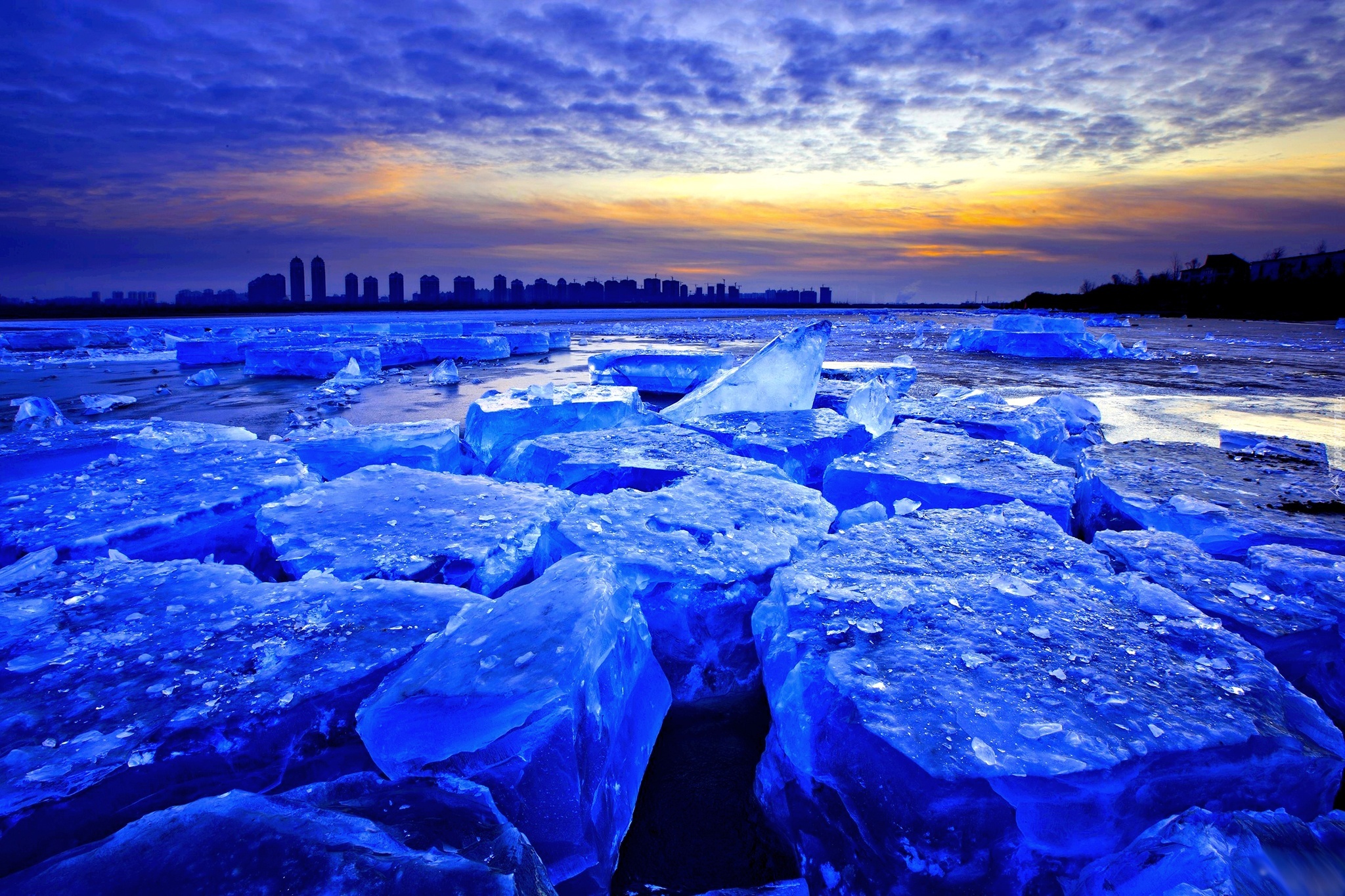 Edytor tapety: Lod, Zachod, Slonca, Rzeka