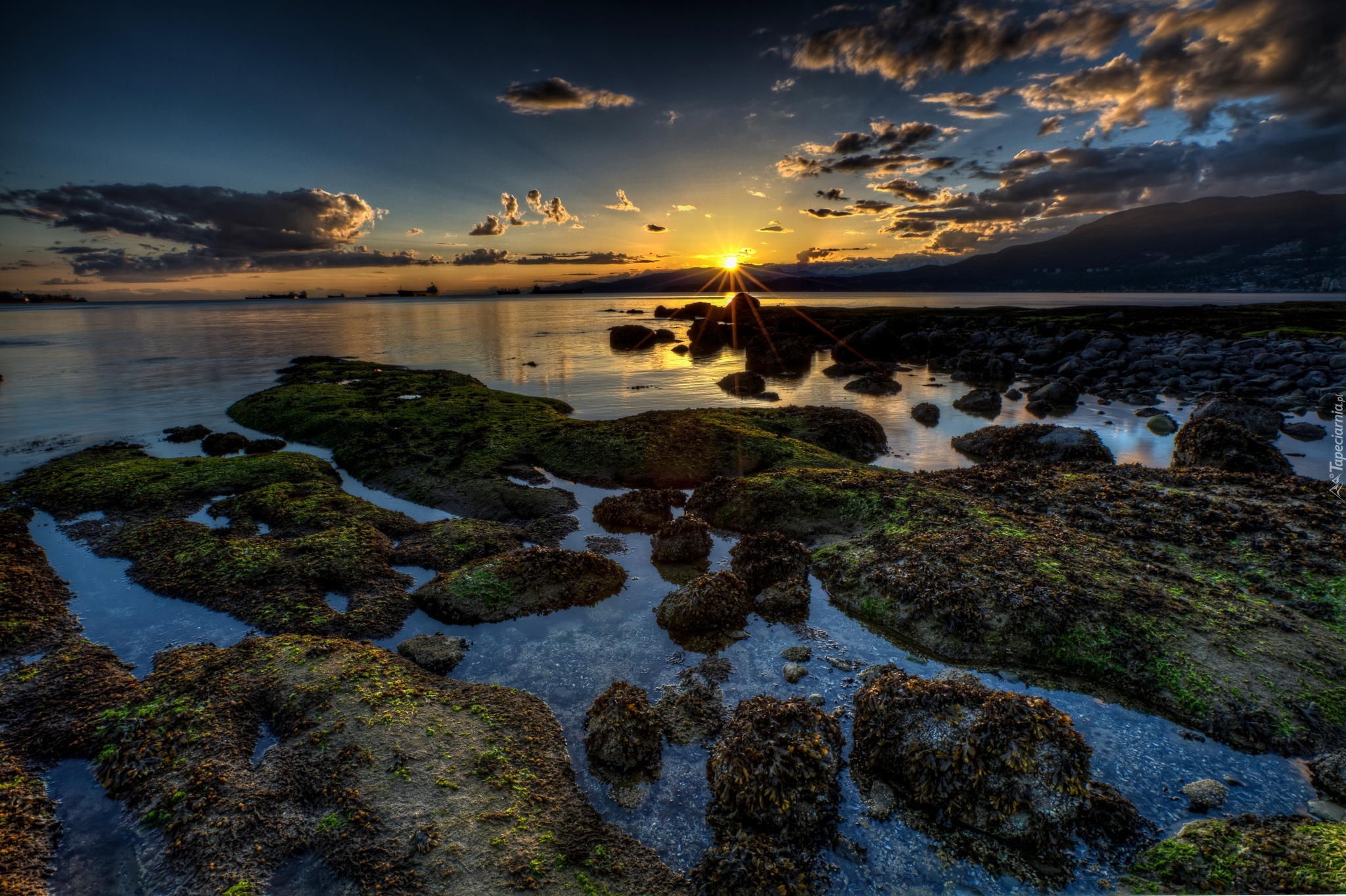 Edytor tapety: Wybrzeze, Morze, Niebo, Chmury, Zachod, Slonca