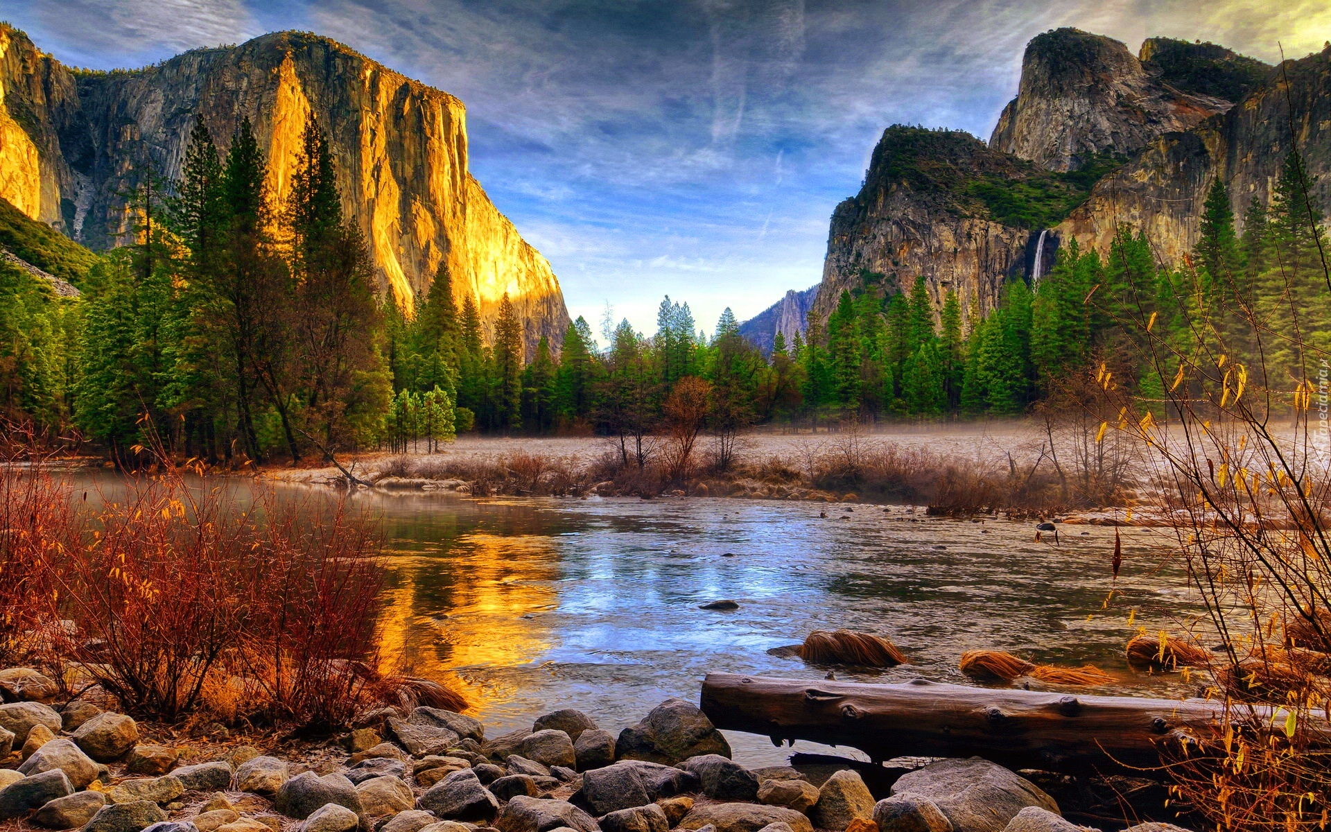 Edytor tapety: Góry, Rzeka, Kamienie, Las