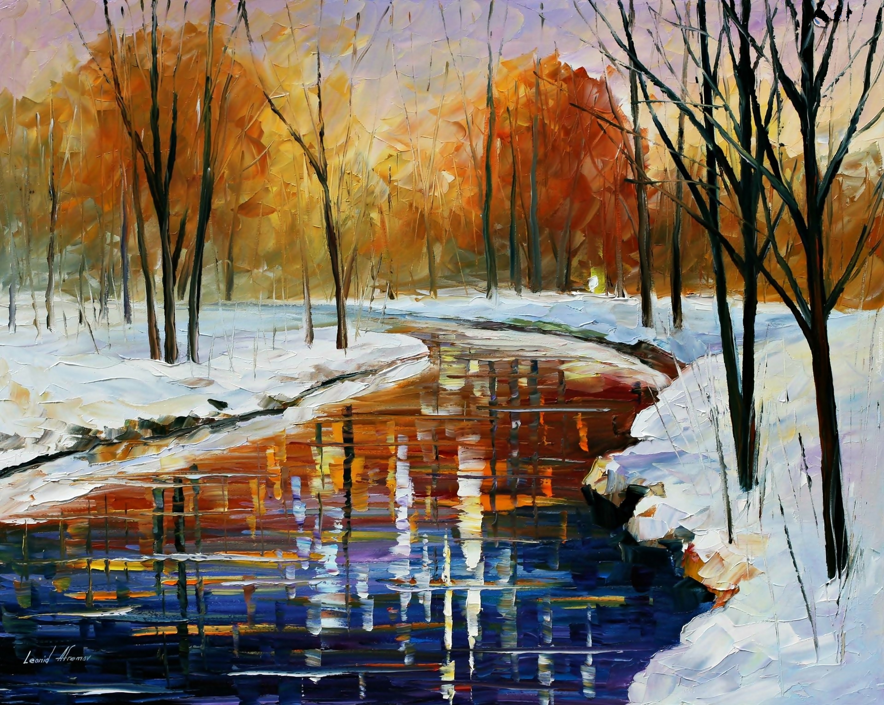 Edytor tapety: Leonid, Afremov, Drzewa, Rzeka