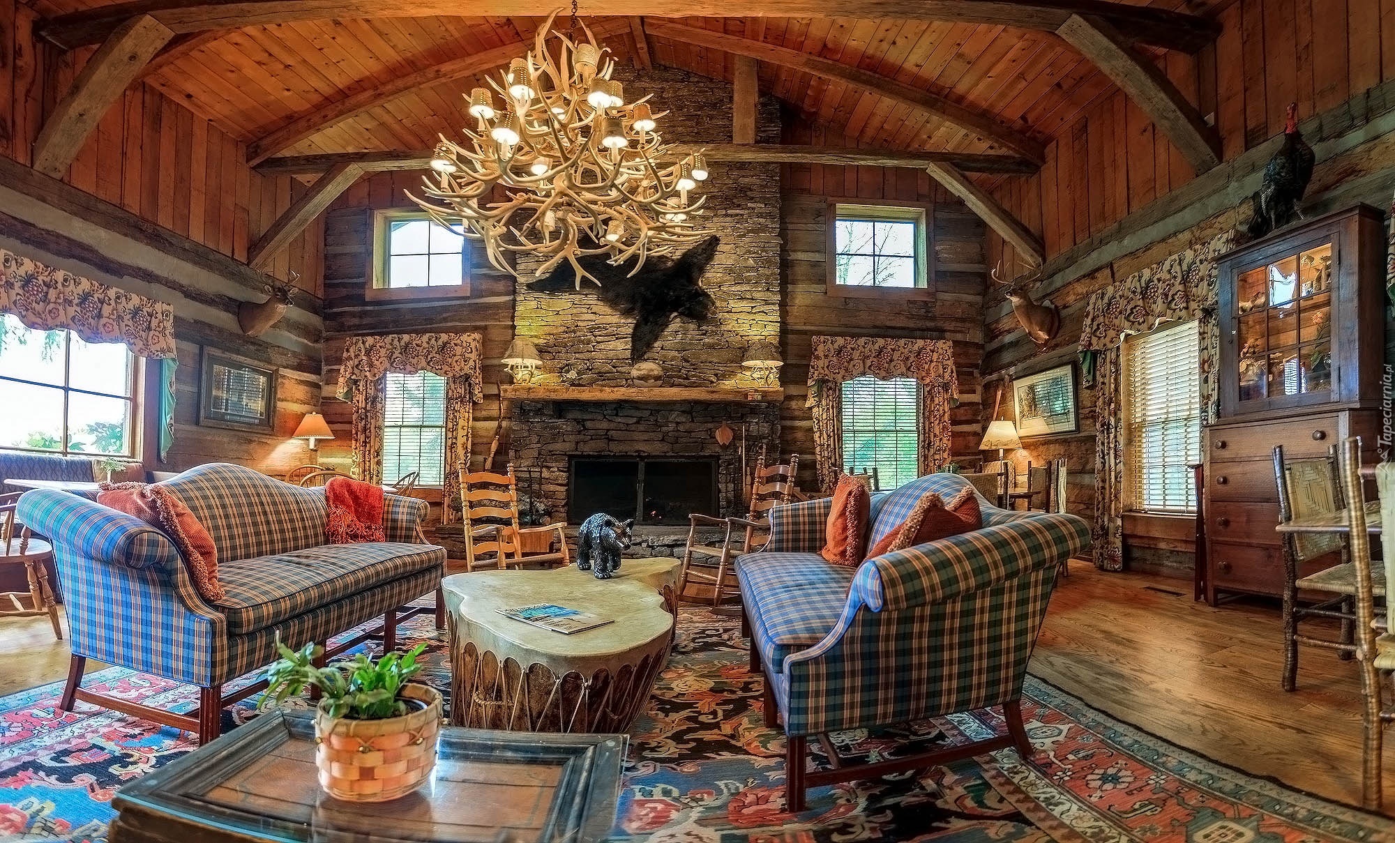 Edytor tapety: Salon, Kominek, Sofy, Myśliwskie, Trofea