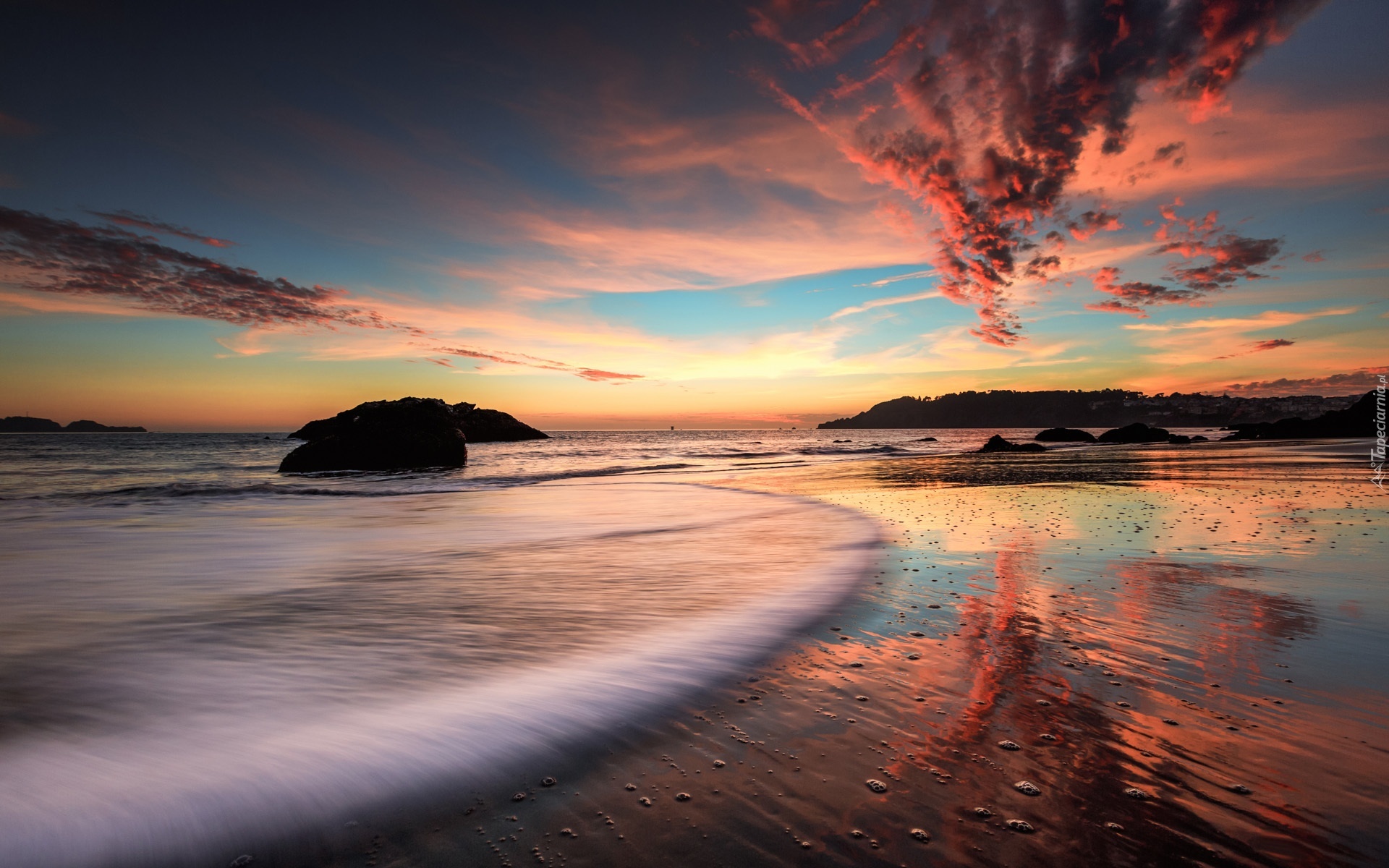 Edytor tapety: Zachód, Słońca, Chmury, Morze, Skała