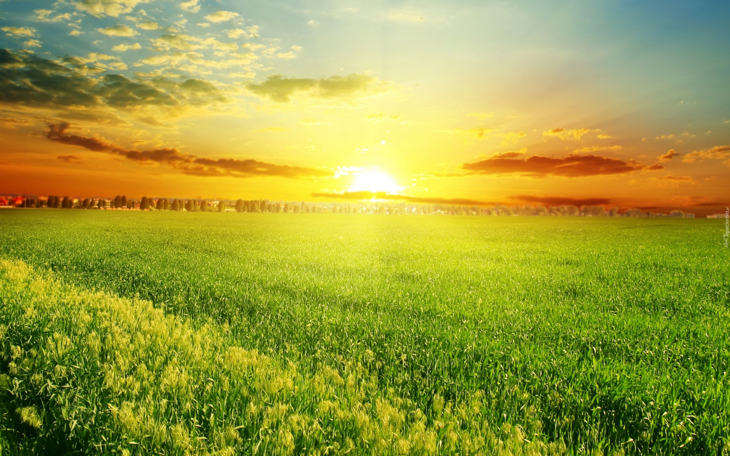 Edytor tapety: Zachód, Słońca, Pola, Zboża