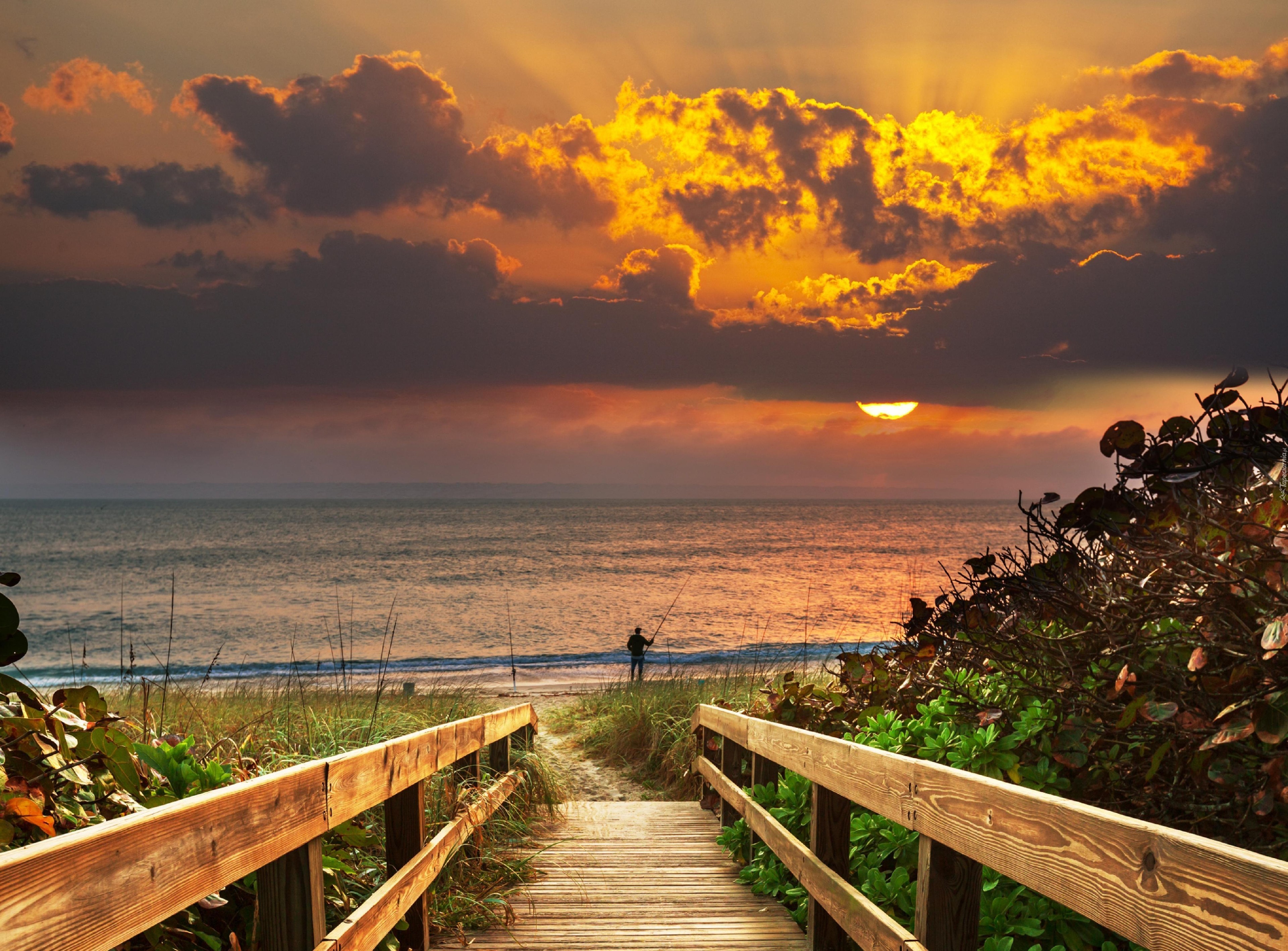 Edytor tapety: Zachód, Słońca, Morze, Schody