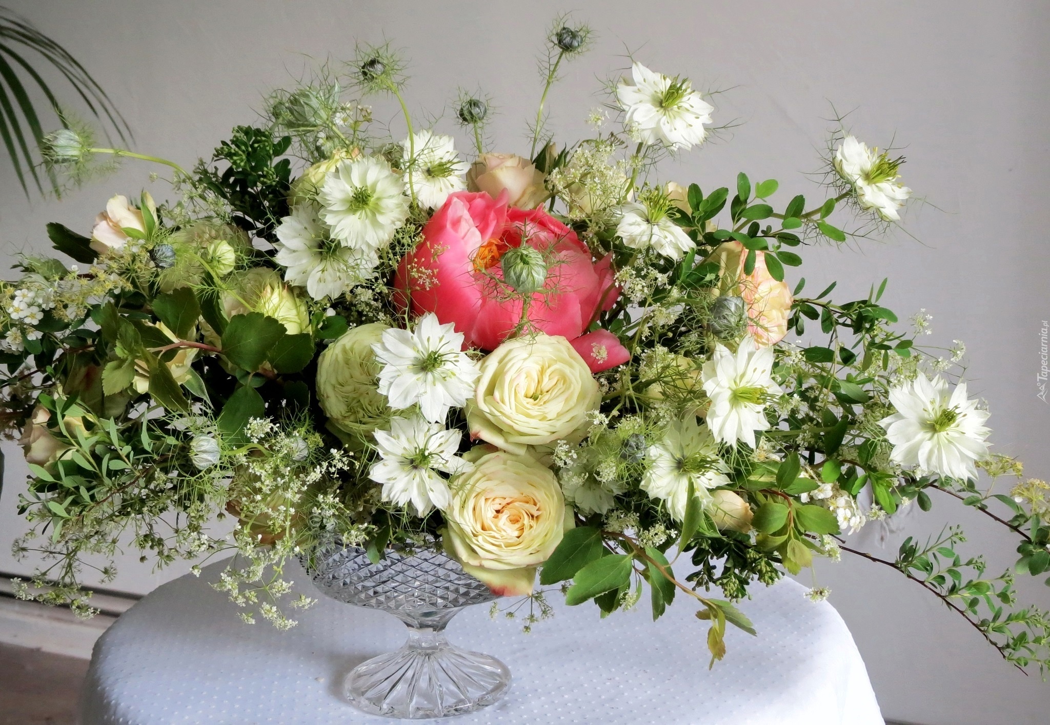 Edytor tapety: Róże, Piwonia, Białe Kwiaty, Bukiet