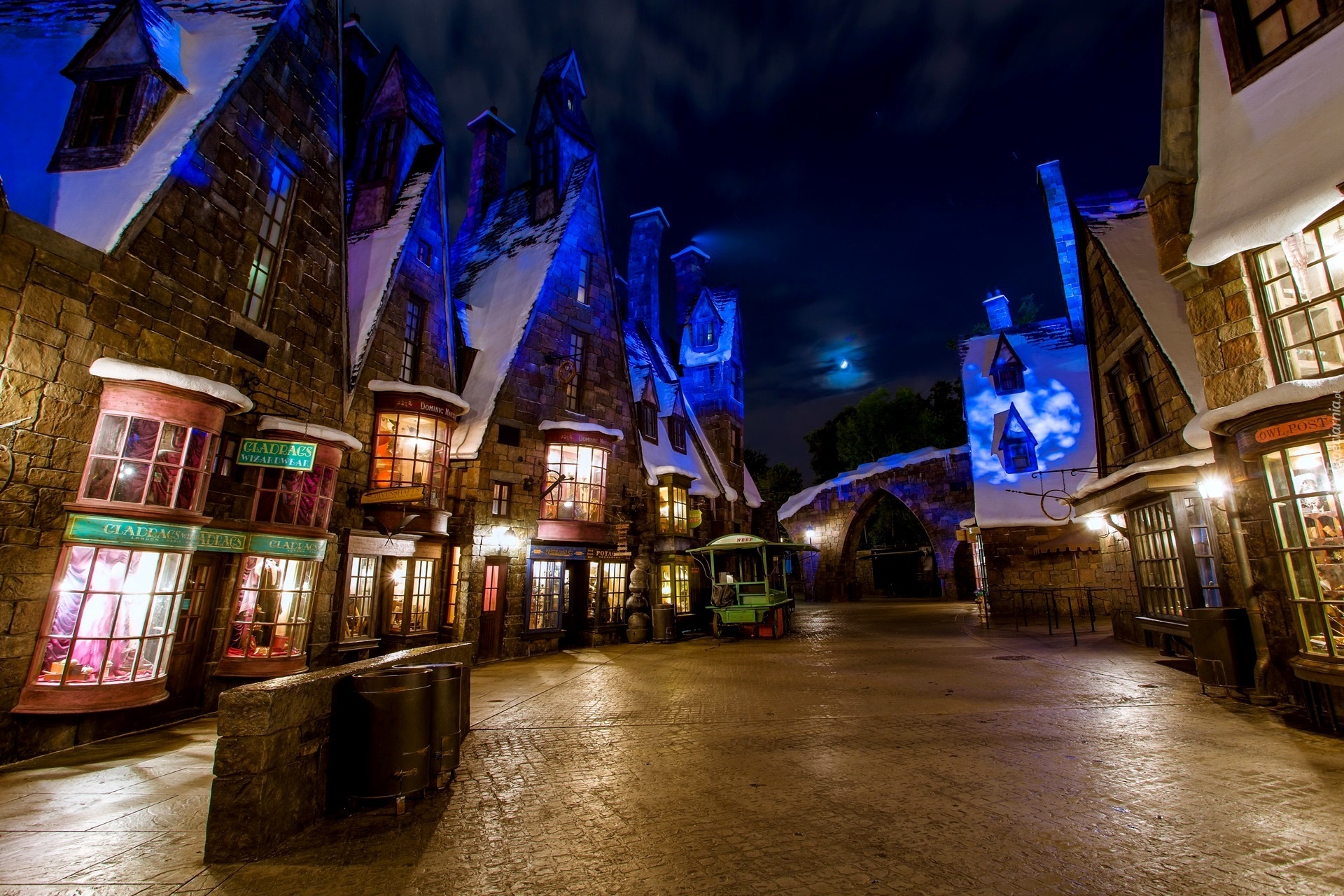 Edytor tapety: Miasto, Noc, Domy, Ulica, HDR, Disneyland, Kalifornia, USA