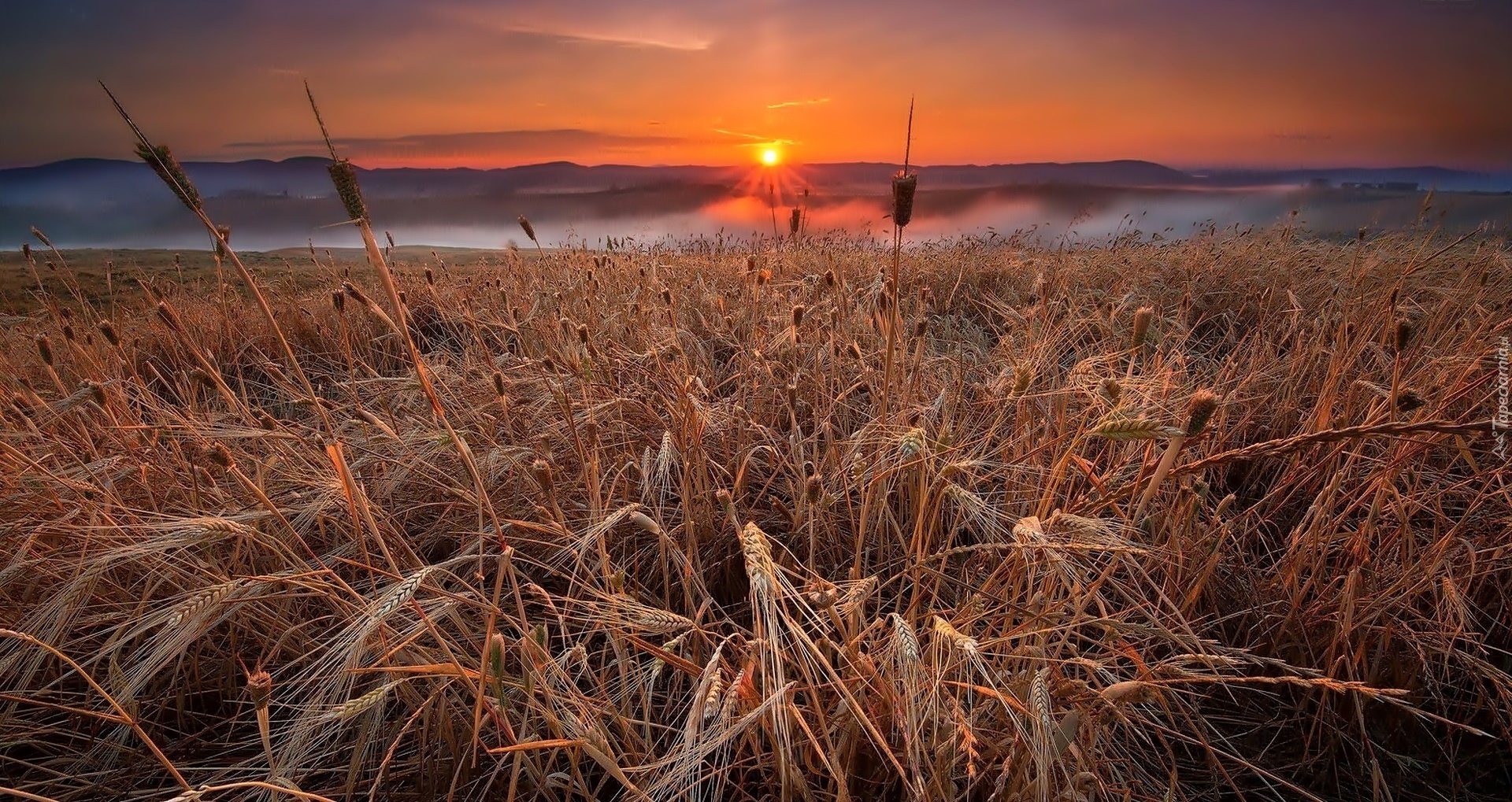 Edytor tapety: Zachód, Słońca, Pole, Zboże