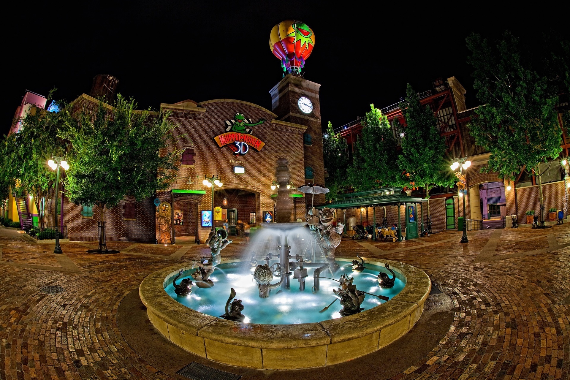 Edytor tapety: Fontanna, Miasto, Noc, HDR, Disneyland, Kalifornia, USA