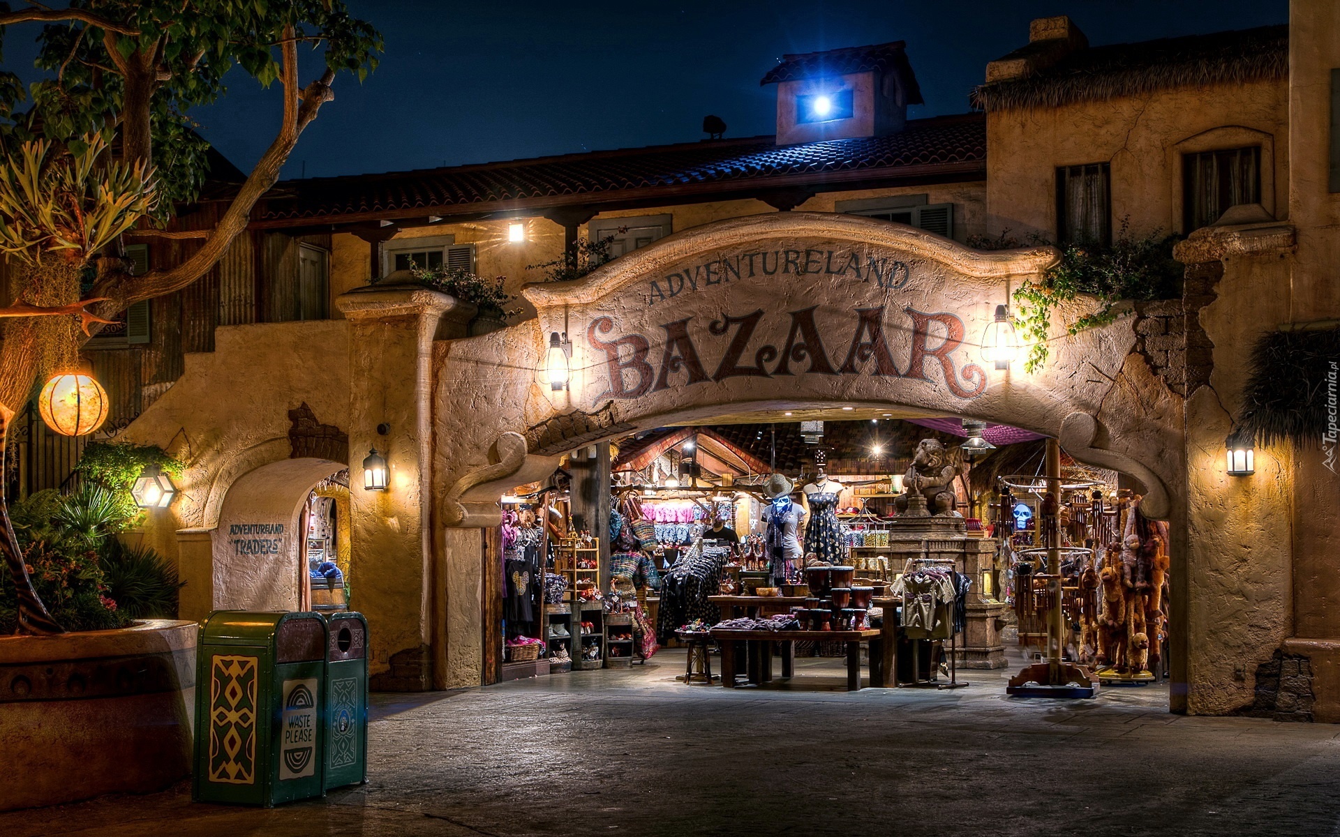 Edytor tapety: Disneyland, Miasto, Ulica, Noc, Kalifornia, USA