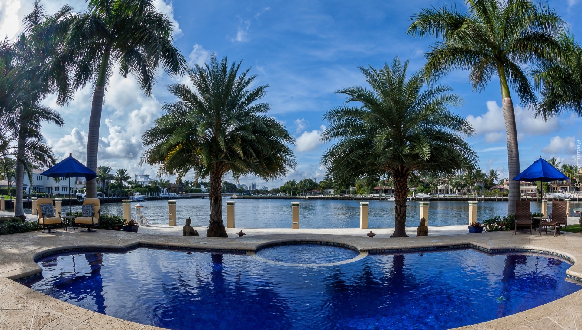 Edytor tapety: Jezioro, Basen, Palmy