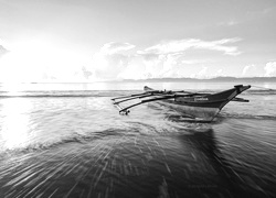 Edytor tapety: Morze, Lodka, Niebo, Chmury, Promienie, Slonca