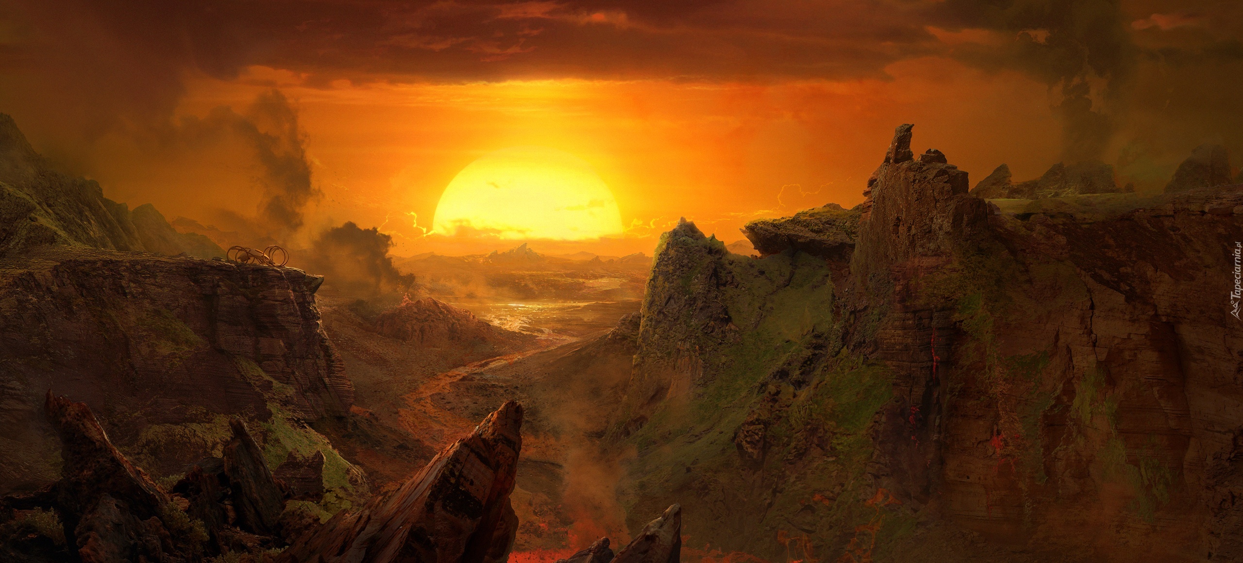 Edytor tapety: Gory, Niebo, Zachod, Slonca