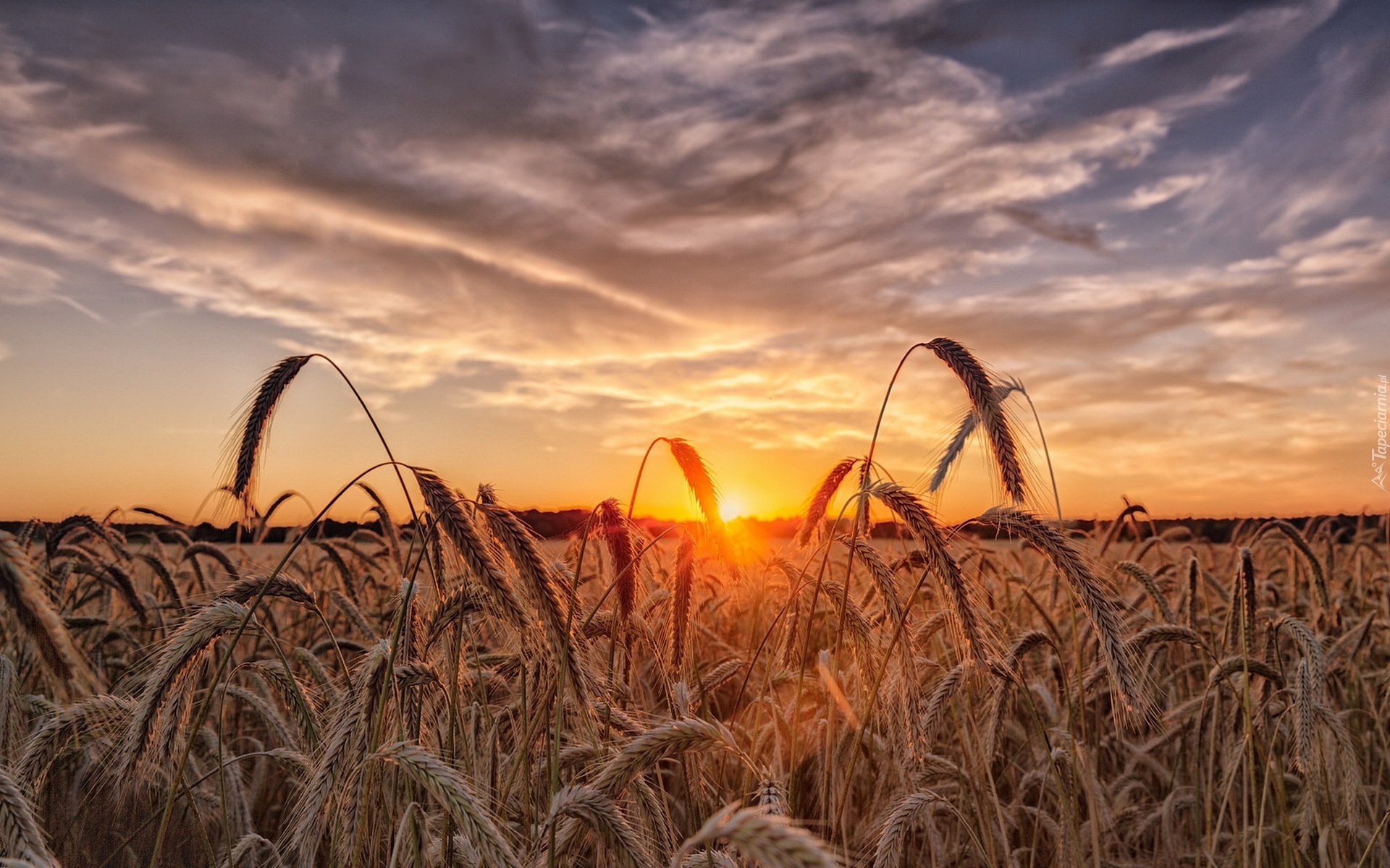 Edytor tapety: Niebo, Chmury, Zachod, Slonca, Pole, Zboze