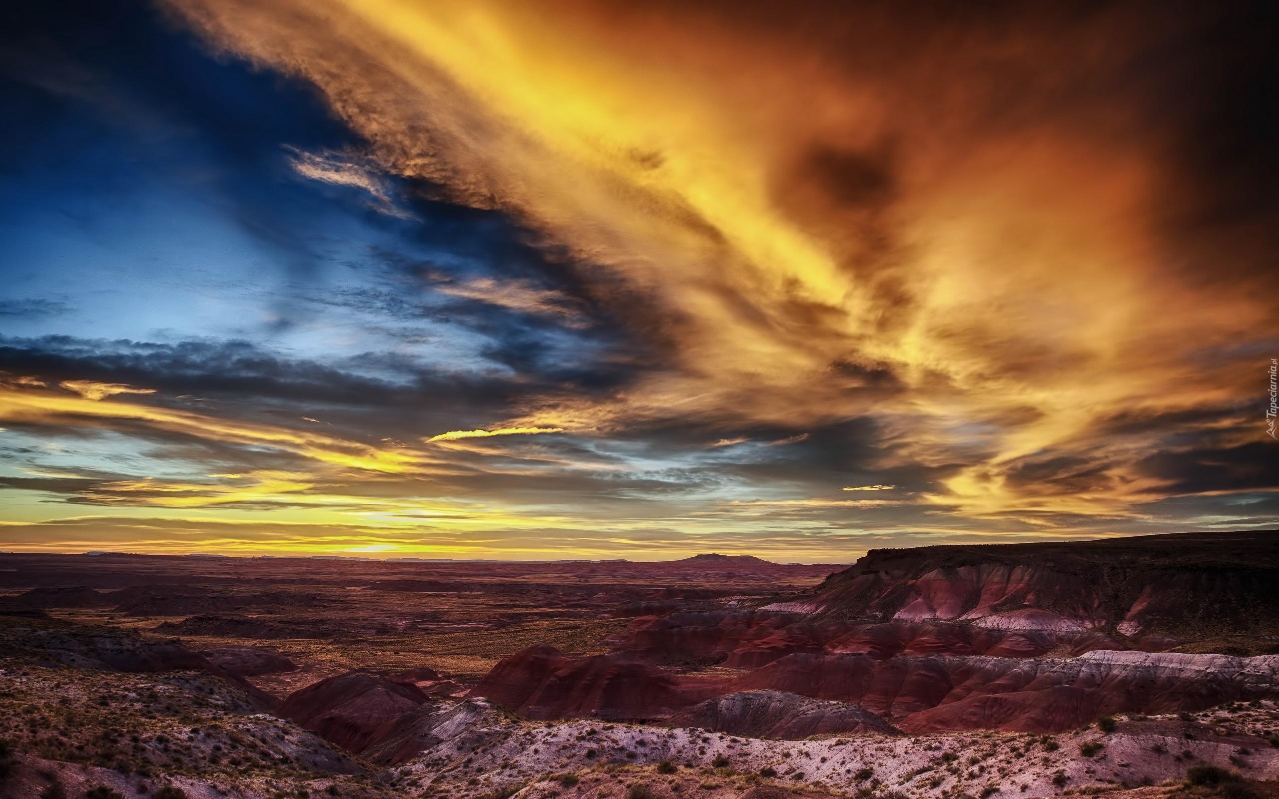 Edytor tapety: Niebo, Chmury, Zachod, Slonca, Gory