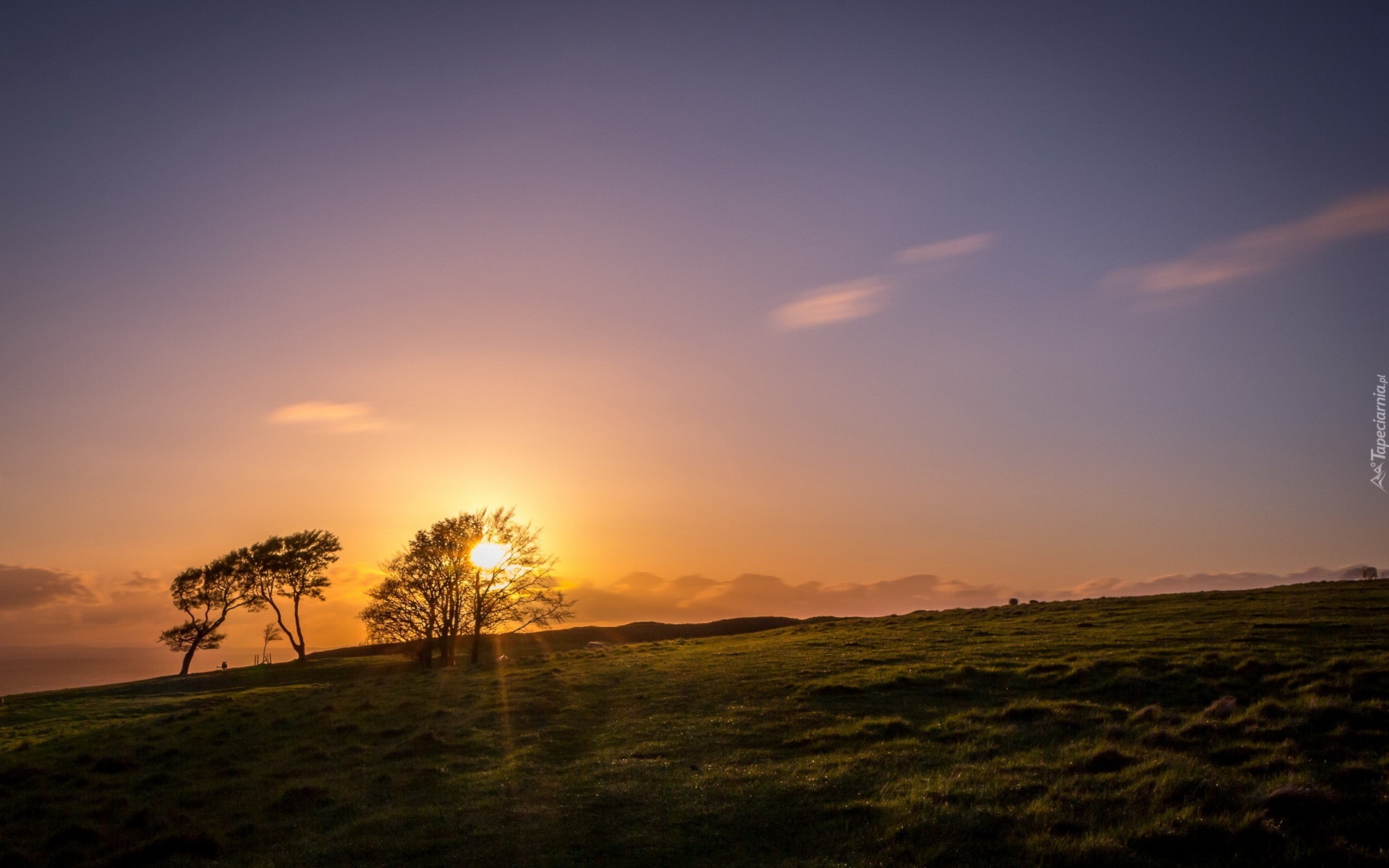Edytor tapety: Łąka, Drzewa, Zachód Słońca