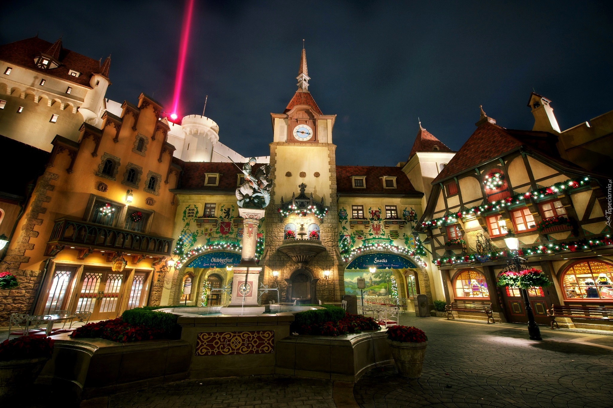 Edytor tapety: Miasto, Noc, Kamienice, Disneyland, Kalifornia, USA